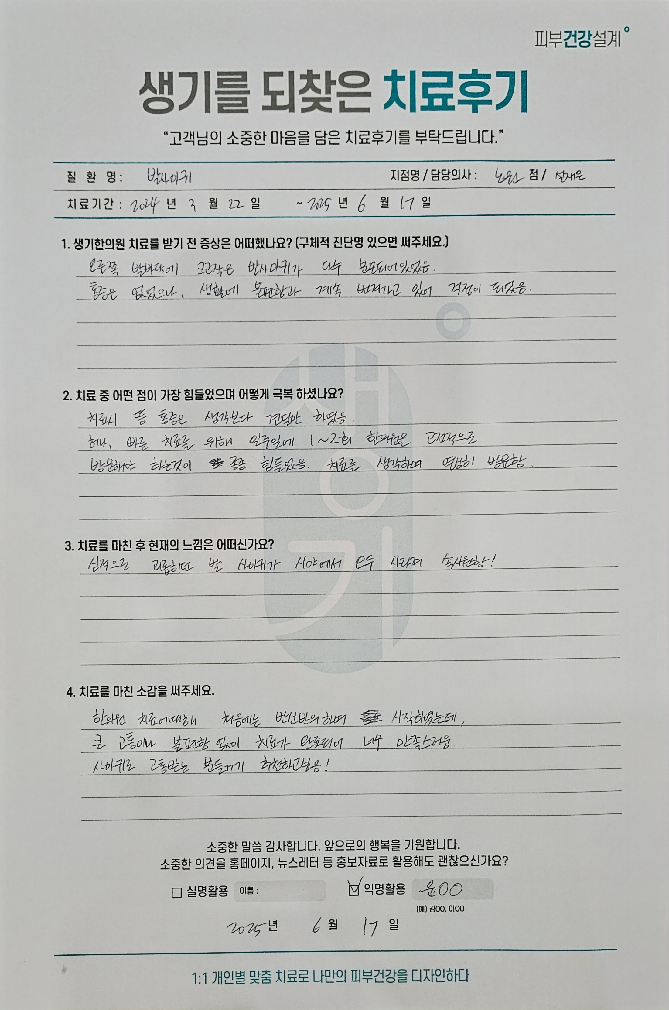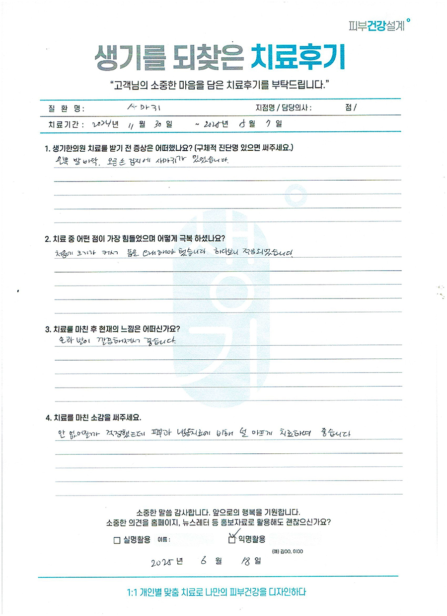 생기한의원과 함께하신 생생한 자필 및 영상 후기를 소개합니다.