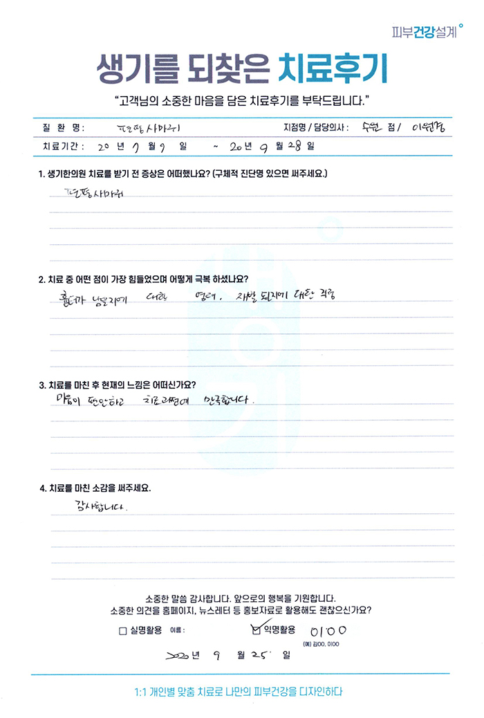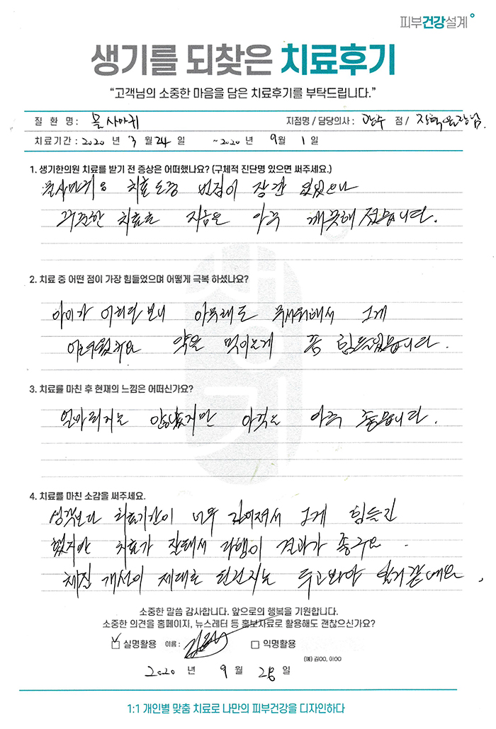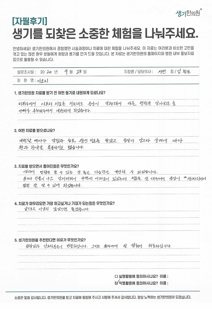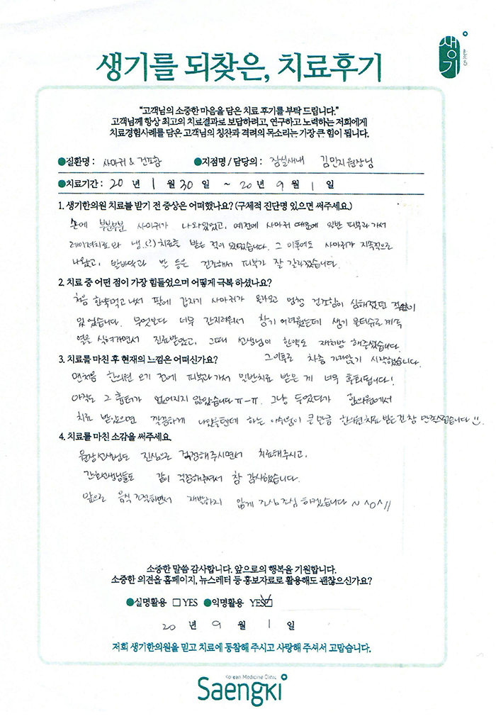 생기한의원과 함께하신 생생한 자필 및 영상 후기를 소개합니다.