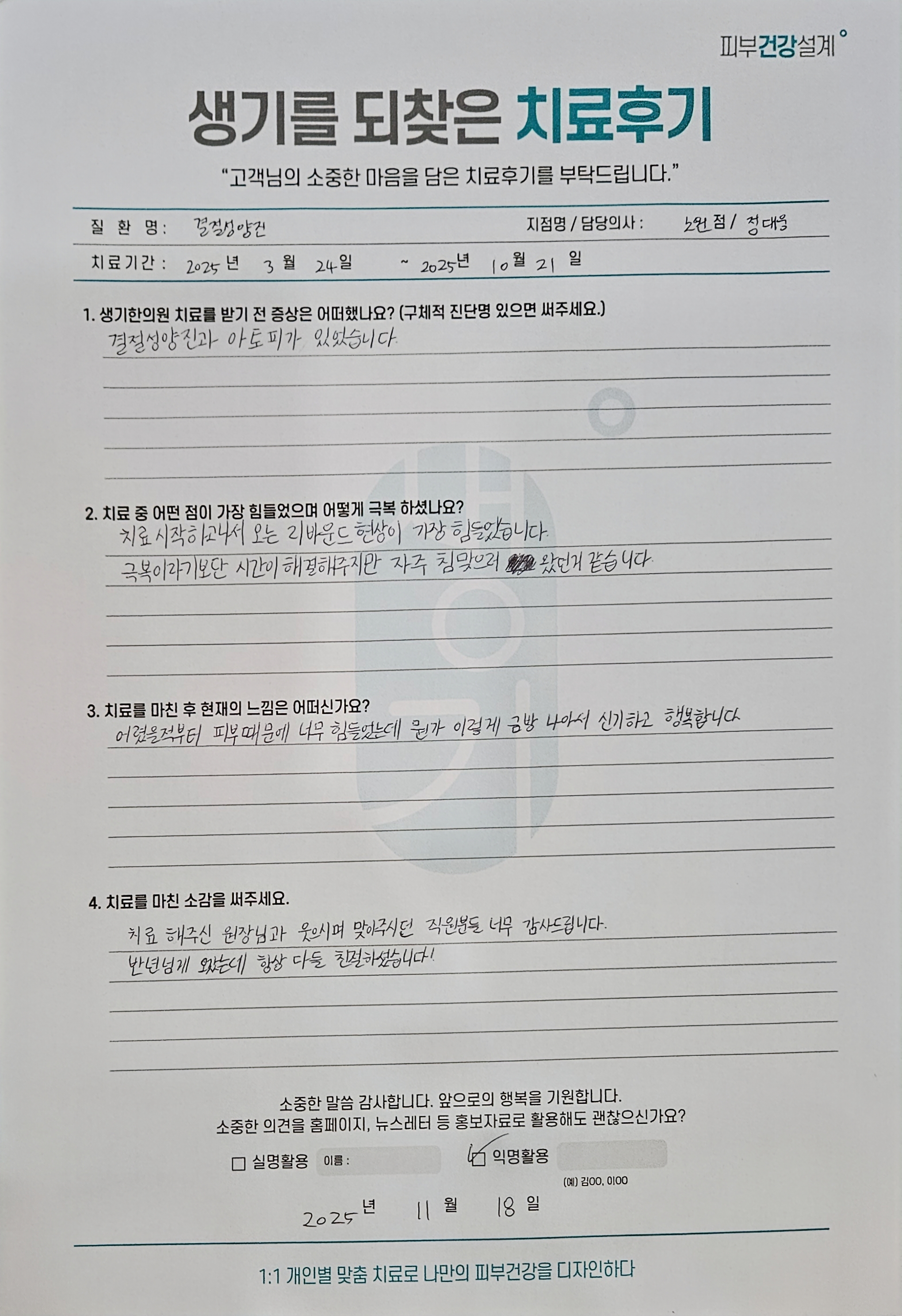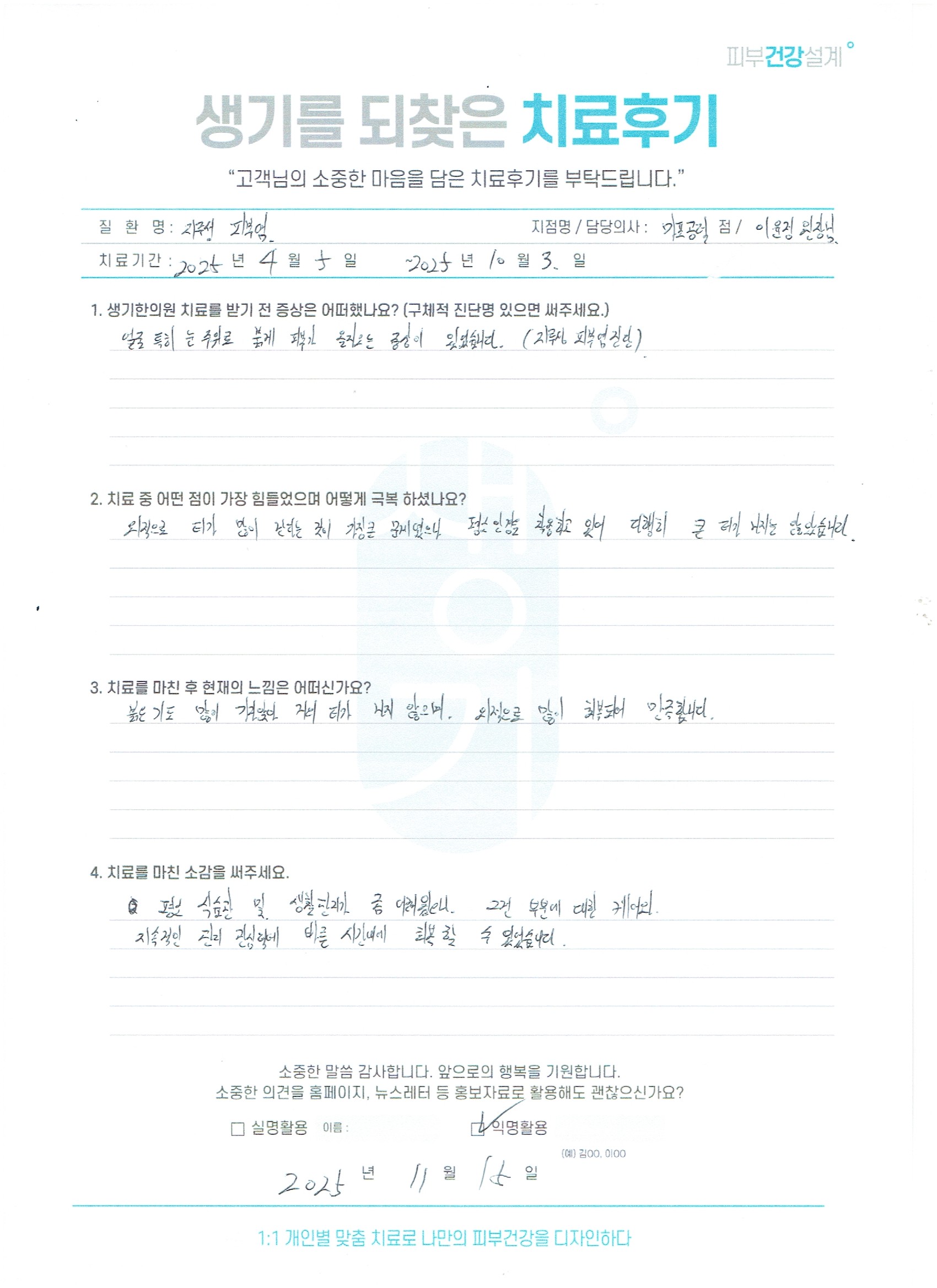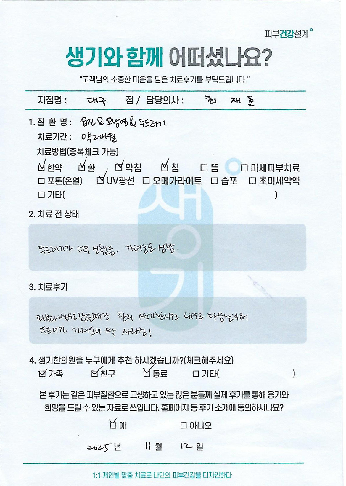 생기한의원과 함께하신 생생한 자필 및 영상 후기를 소개합니다.