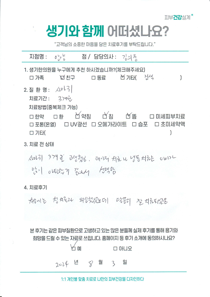 생기한의원과 함께하신 생생한 자필 및 영상 후기를 소개합니다.