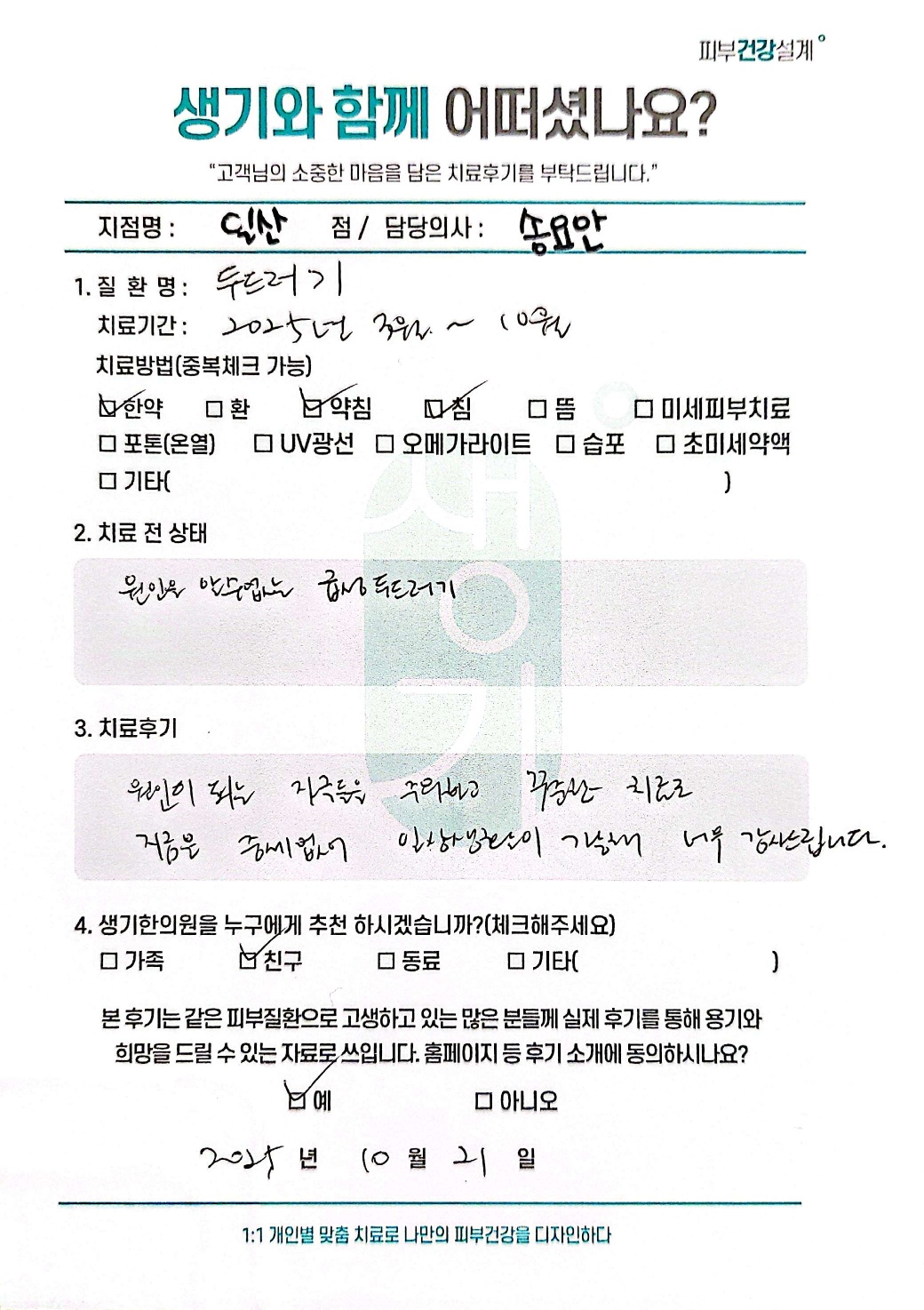 생기한의원과 함께하신 생생한 자필 및 영상 후기를 소개합니다.