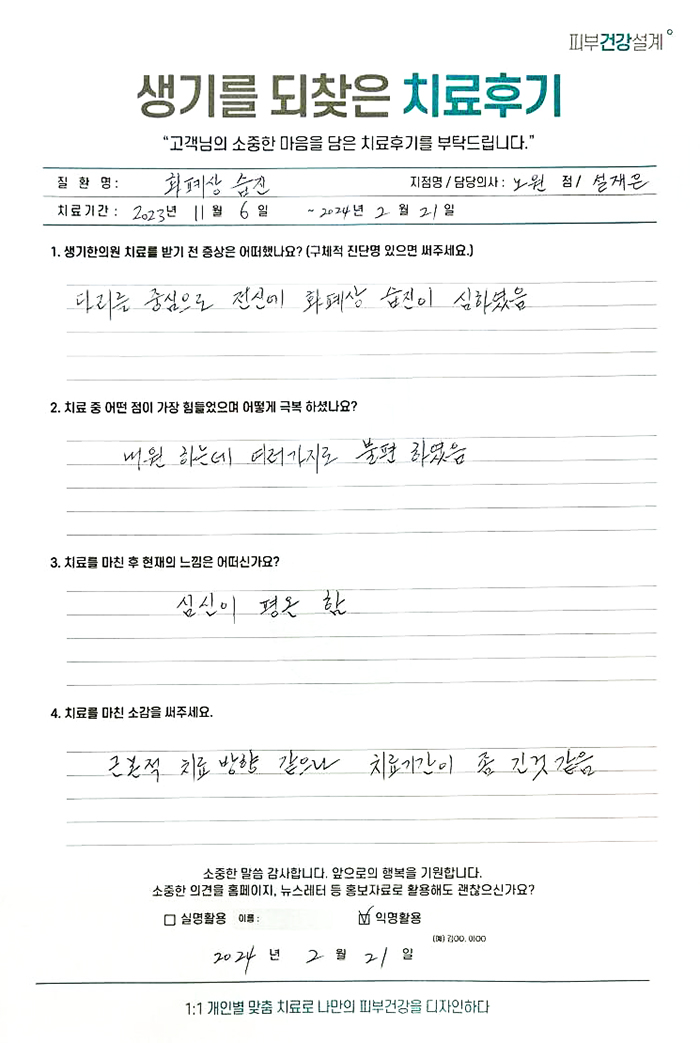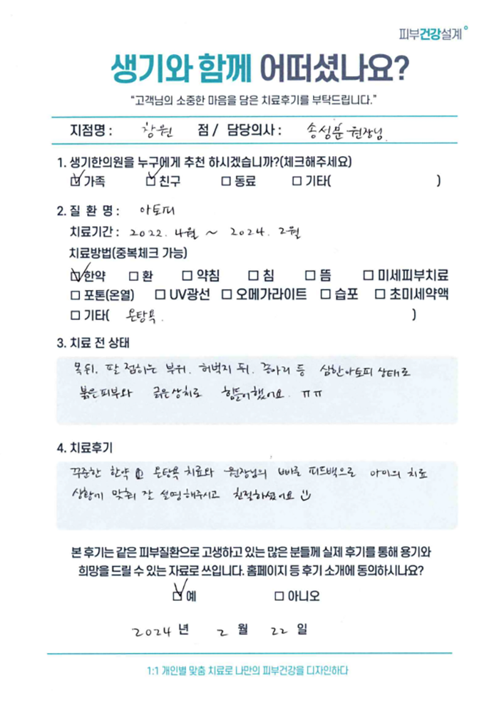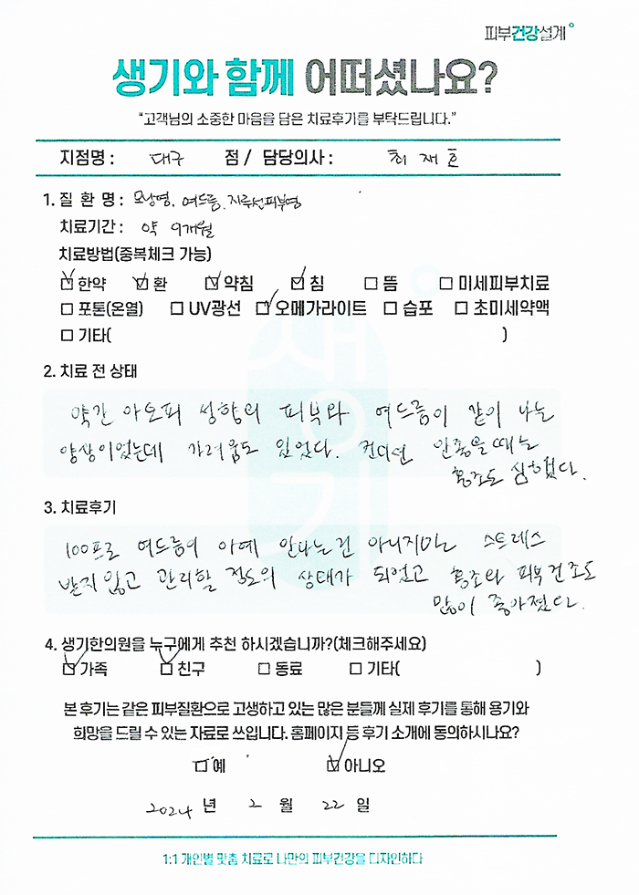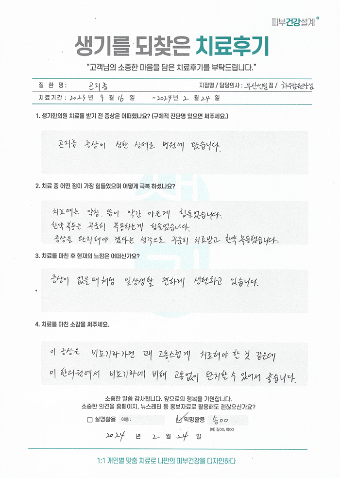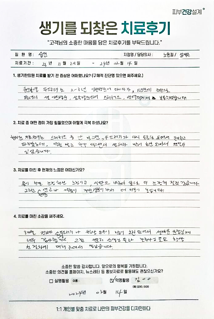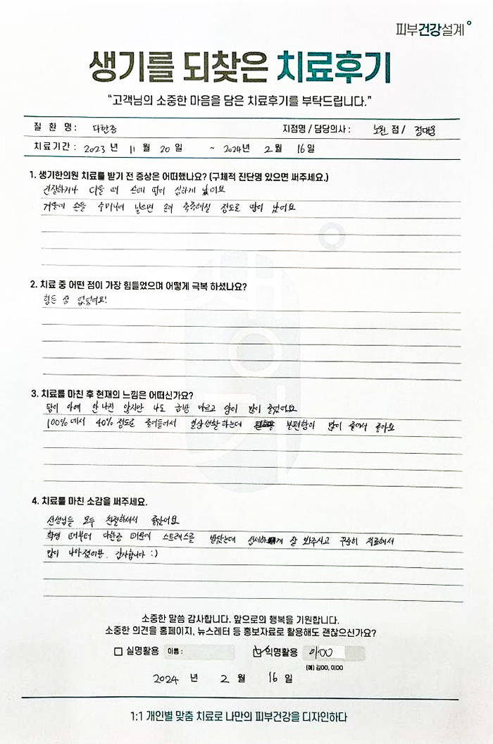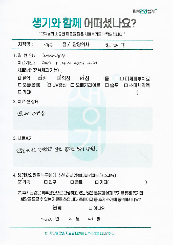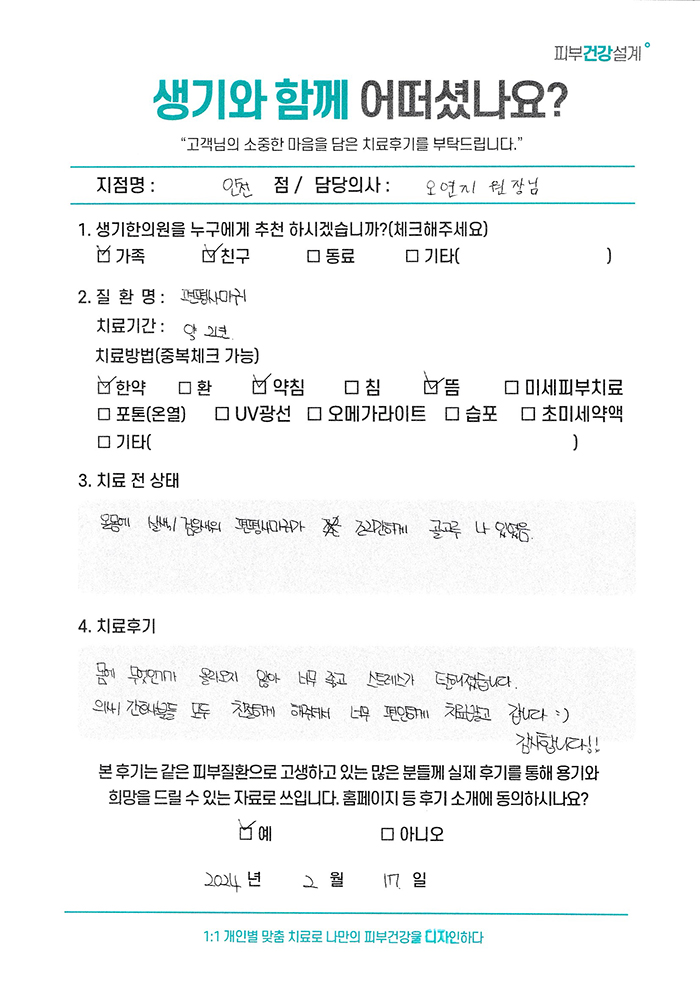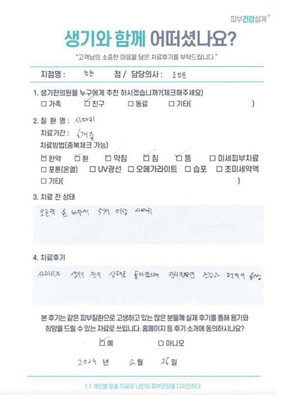 생기한의원과 함께하신 생생한 자필 및 영상 후기를 소개합니다.