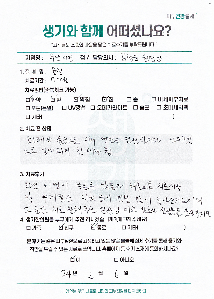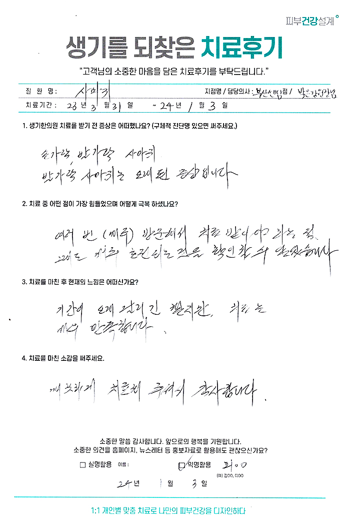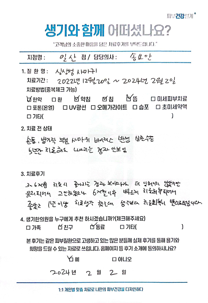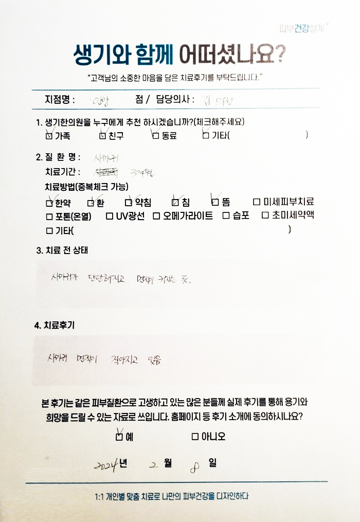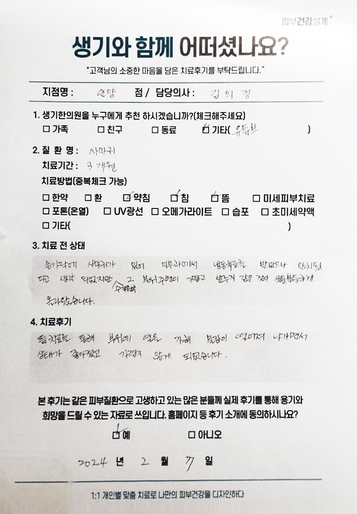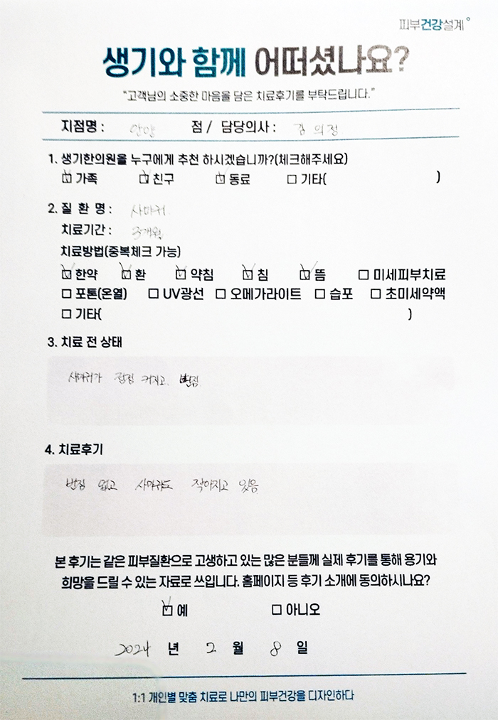 생기한의원과 함께하신 생생한 자필 및 영상 후기를 소개합니다.