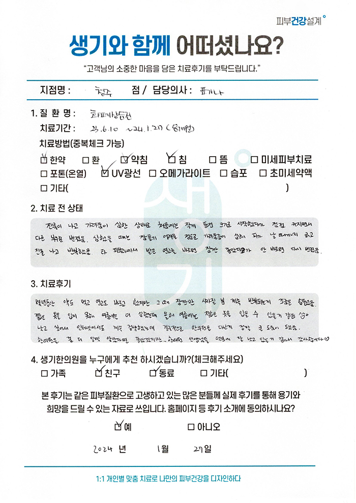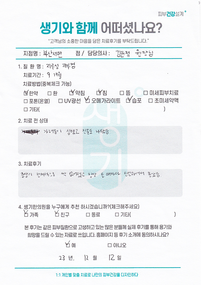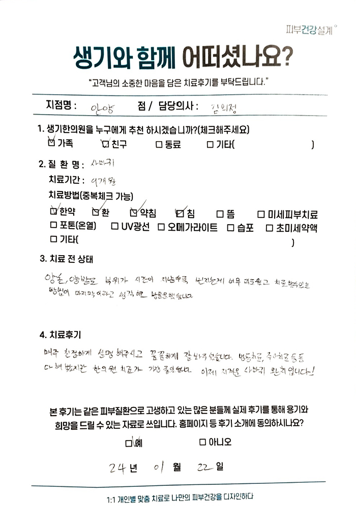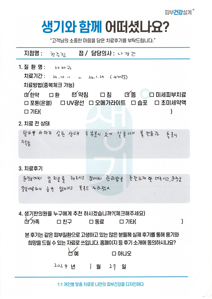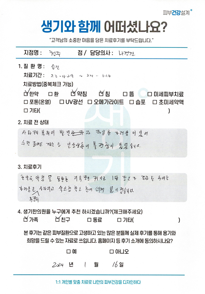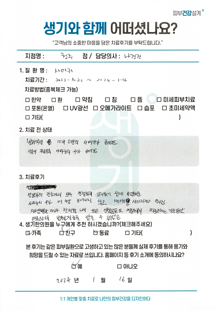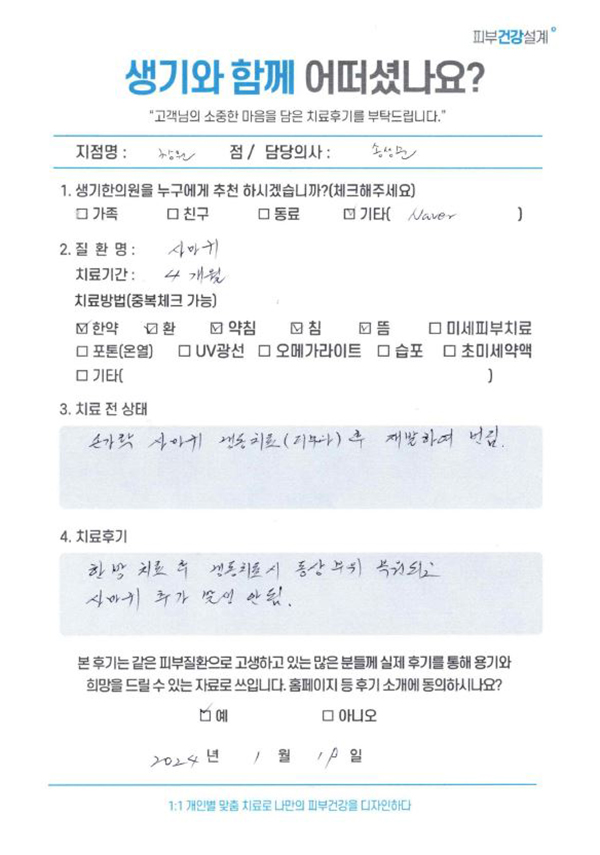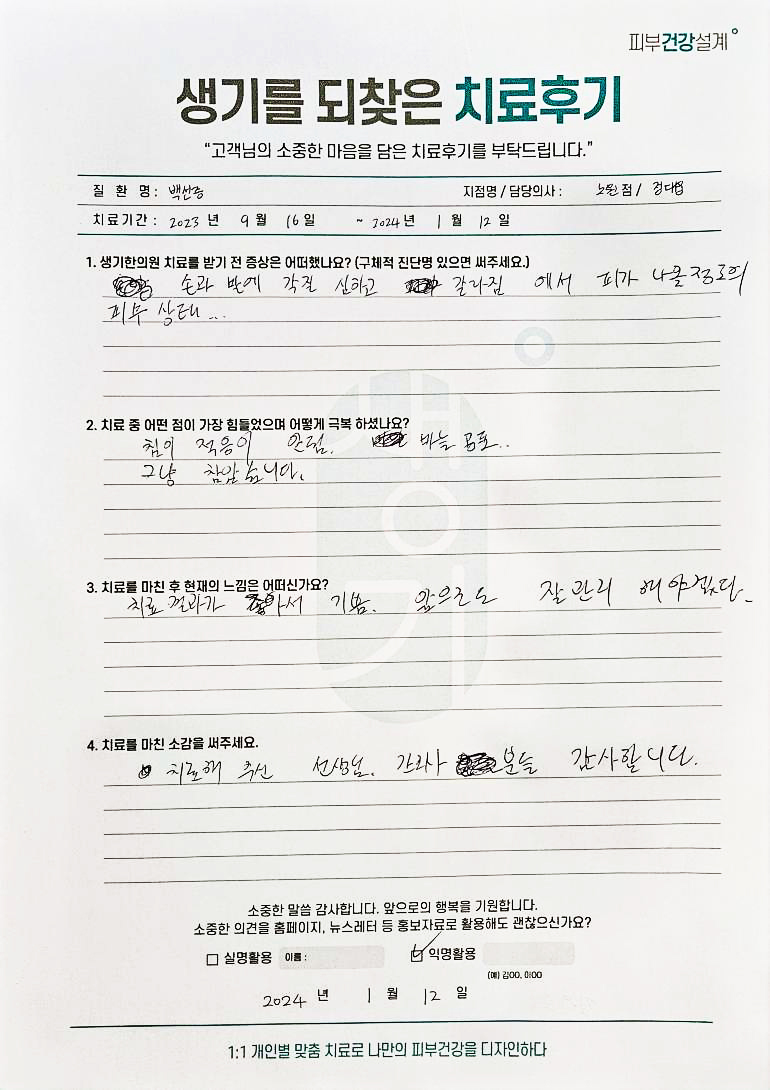 생기한의원과 함께하신 생생한 자필 및 영상 후기를 소개합니다.