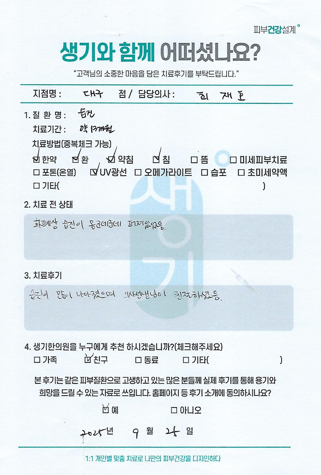 생기한의원과 함께하신 생생한 자필 및 영상 후기를 소개합니다.