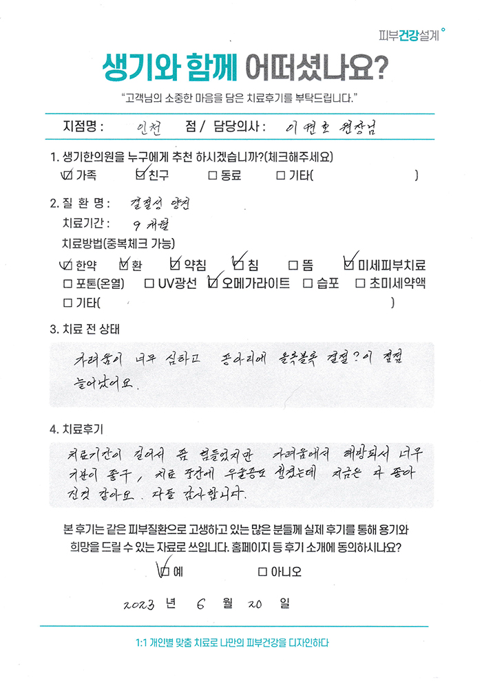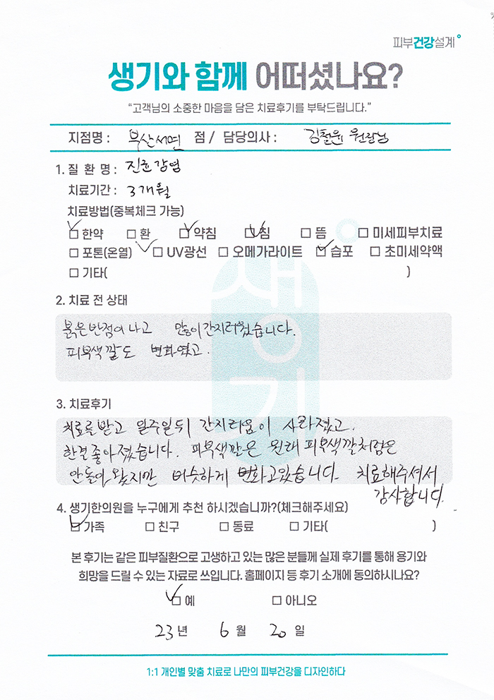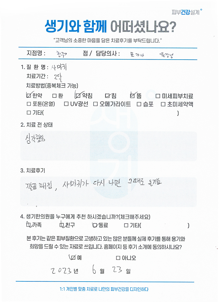 생기한의원과 함께하신 생생한 자필 및 영상 후기를 소개합니다.