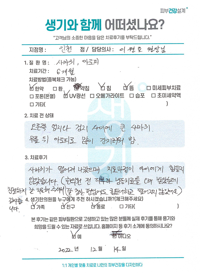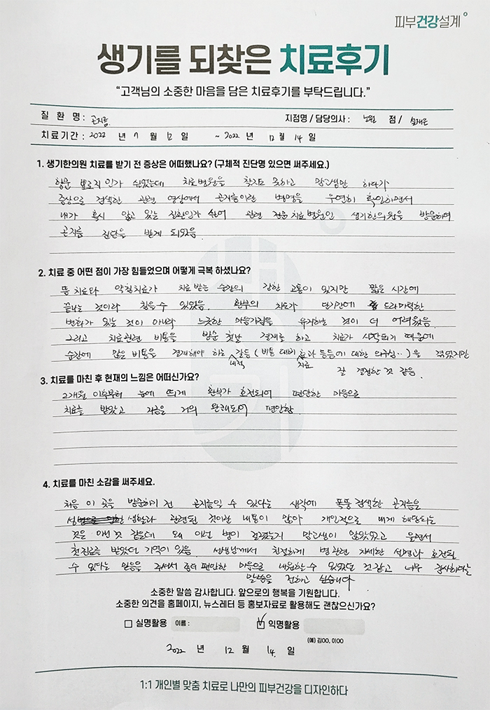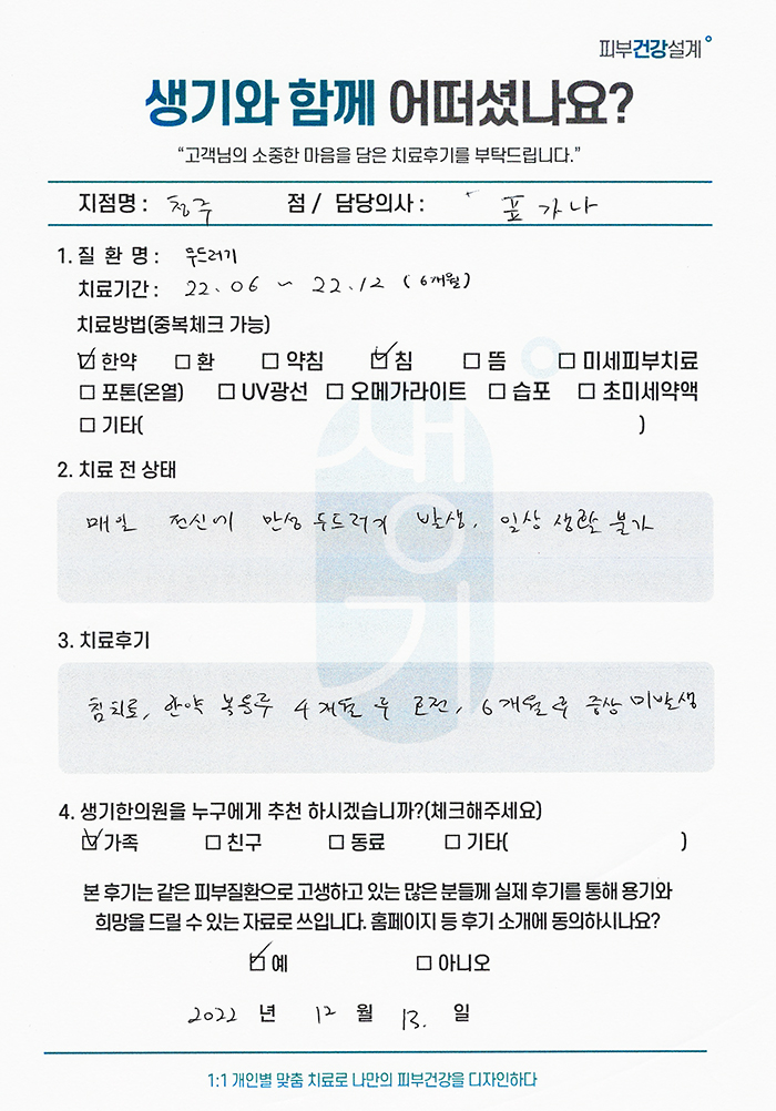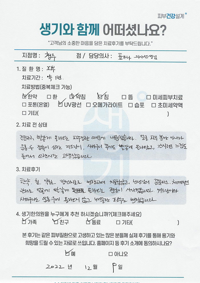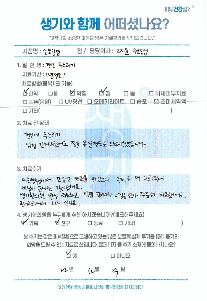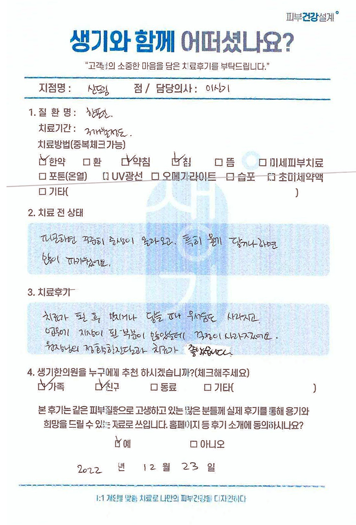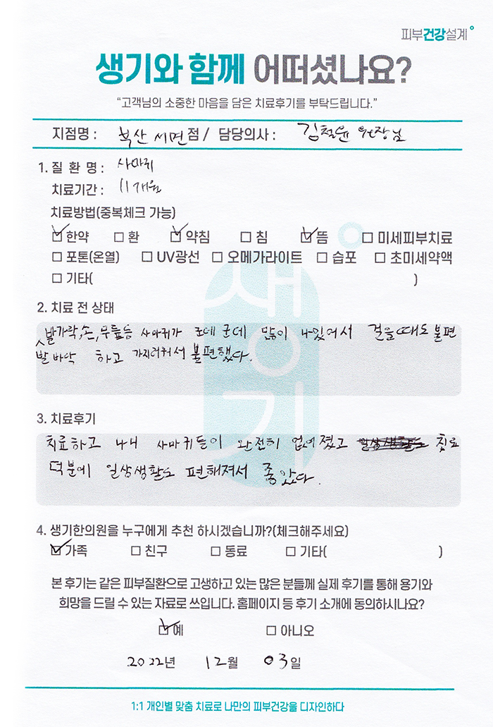 생기한의원과 함께하신 생생한 자필 및 영상 후기를 소개합니다.