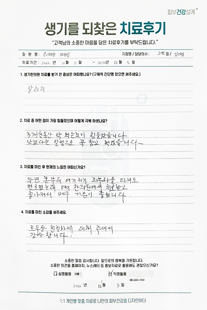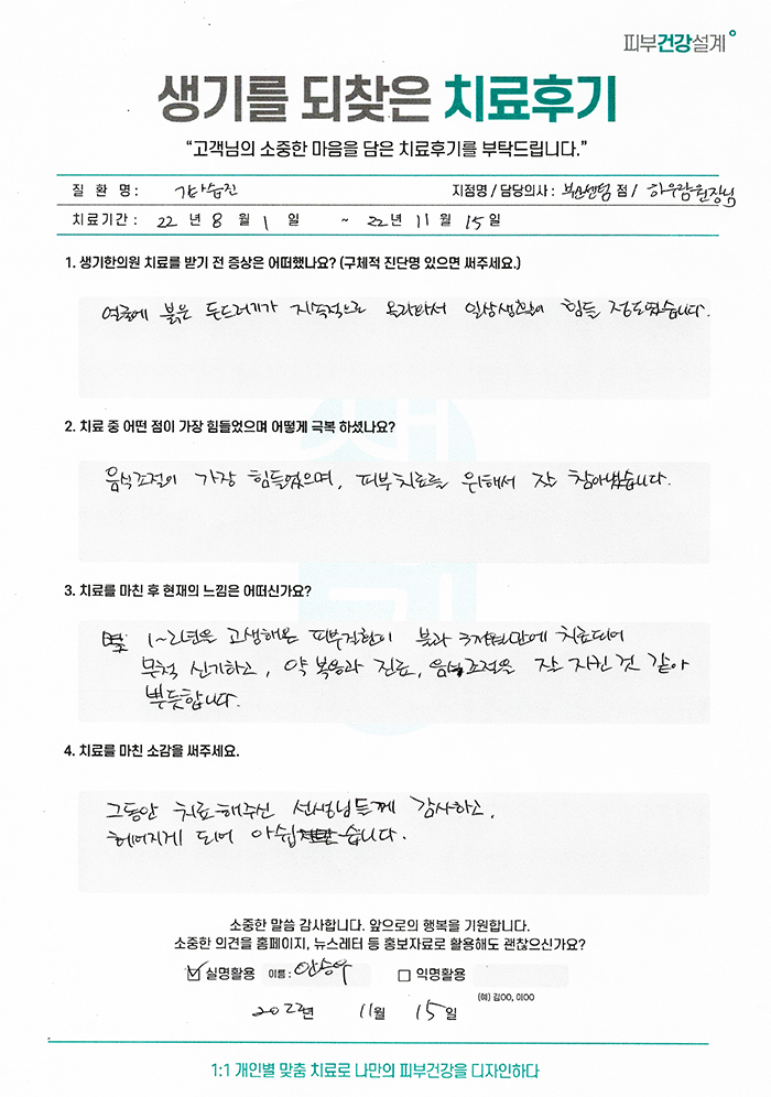 생기한의원과 함께하신 생생한 자필 및 영상 후기를 소개합니다.