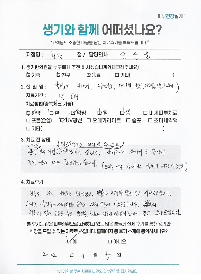 생기한의원과 함께하신 생생한 자필 및 영상 후기를 소개합니다.