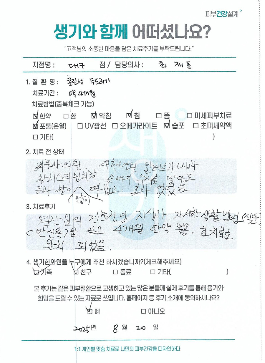 생기한의원과 함께하신 생생한 자필 및 영상 후기를 소개합니다.