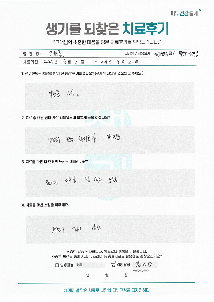 생기한의원과 함께하신 생생한 자필 및 영상 후기를 소개합니다.