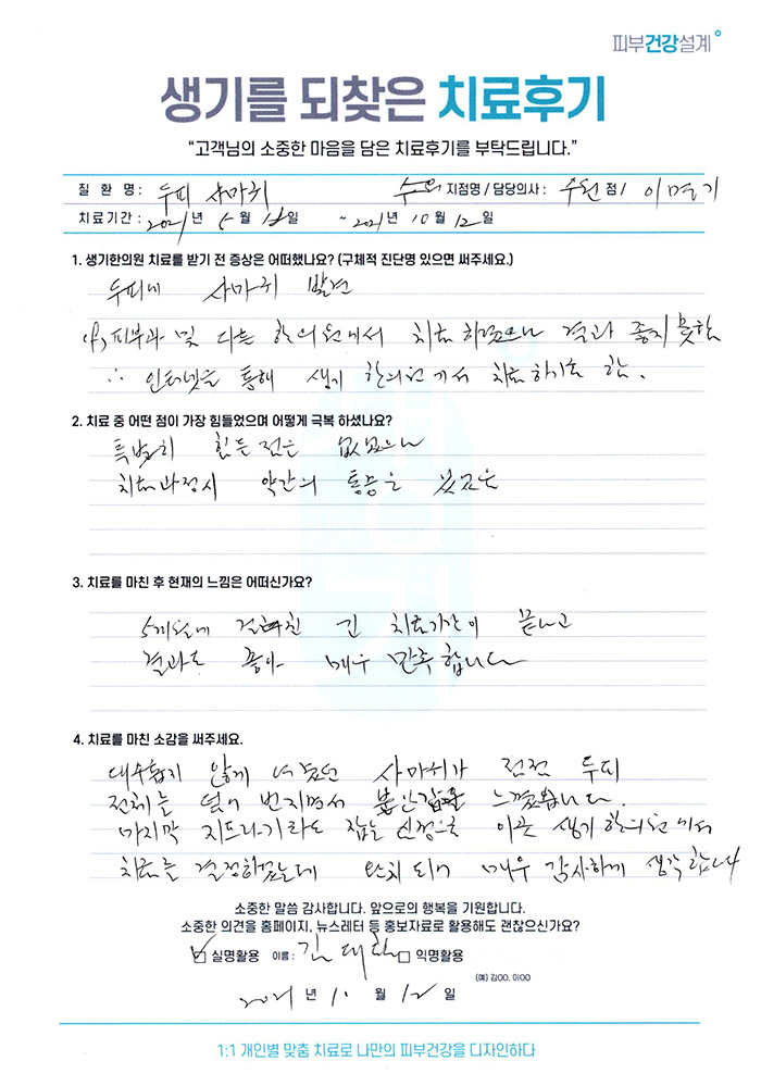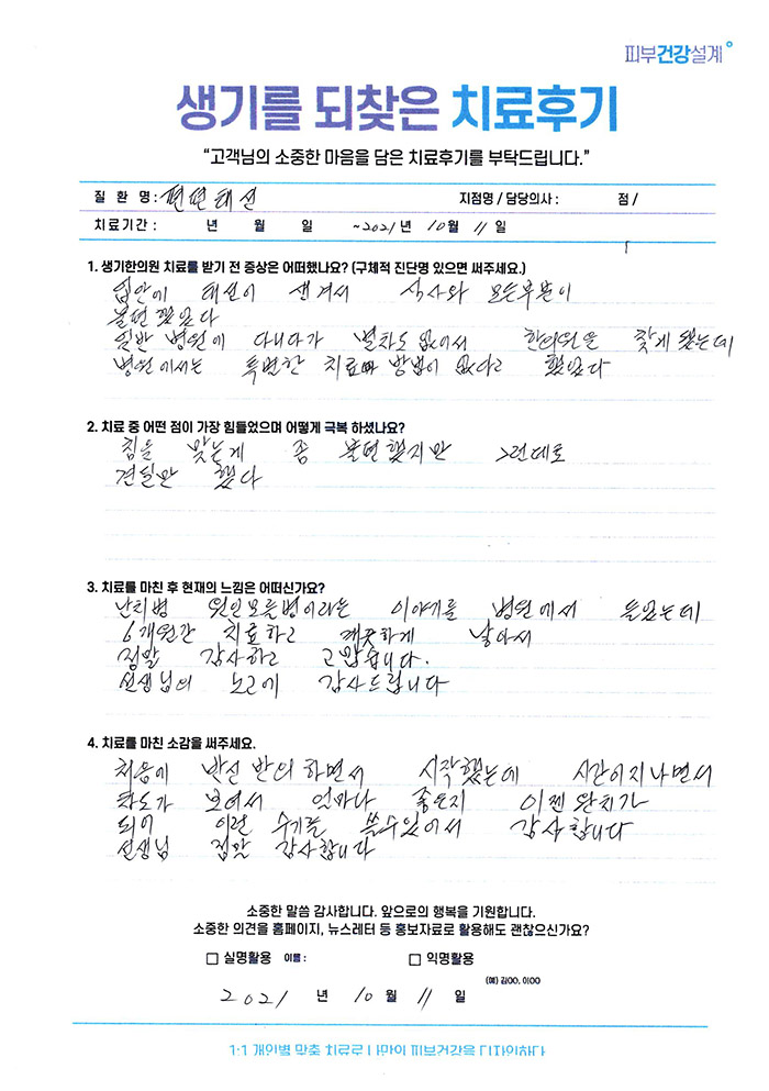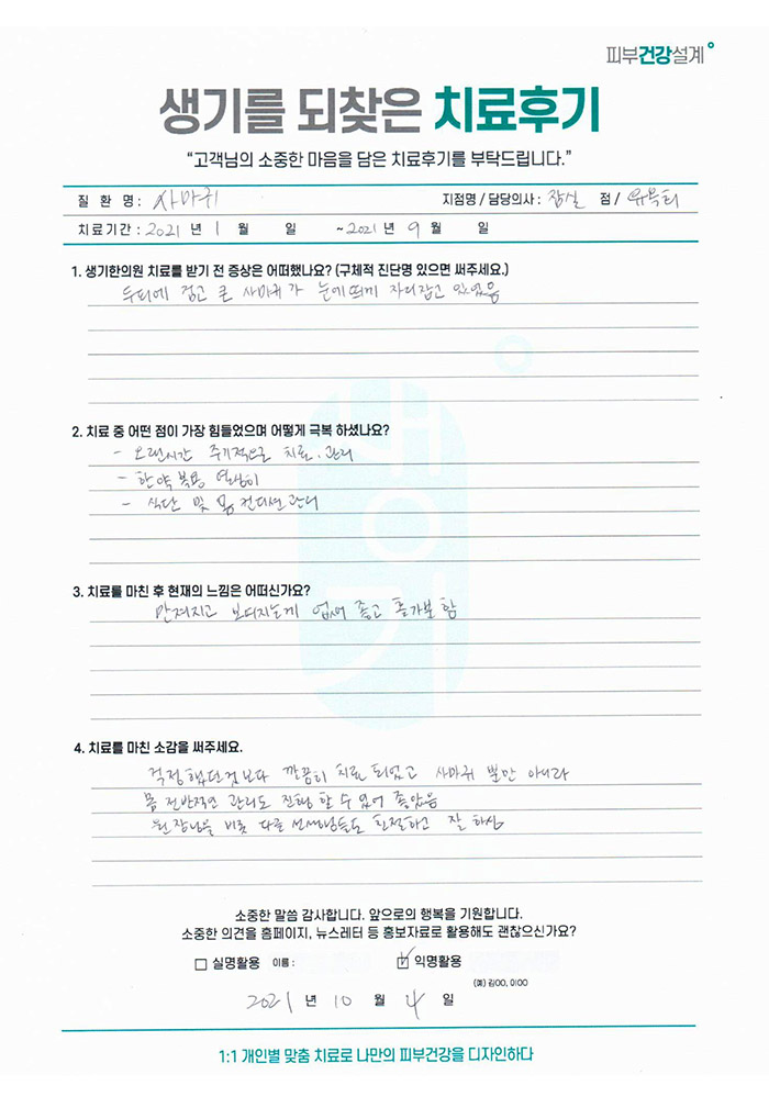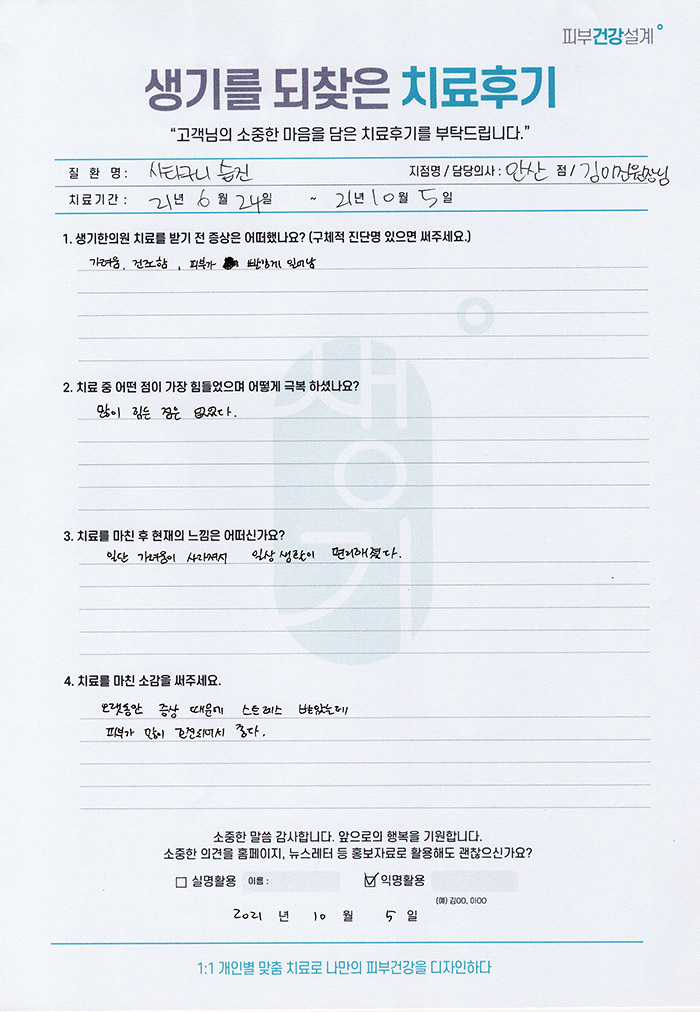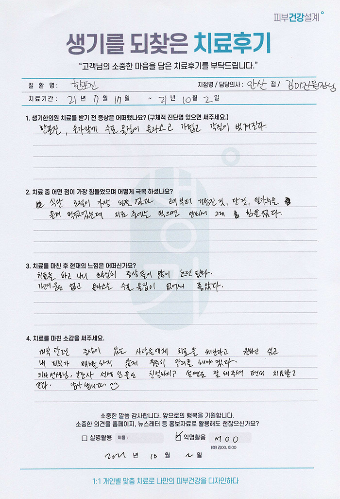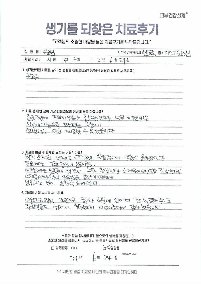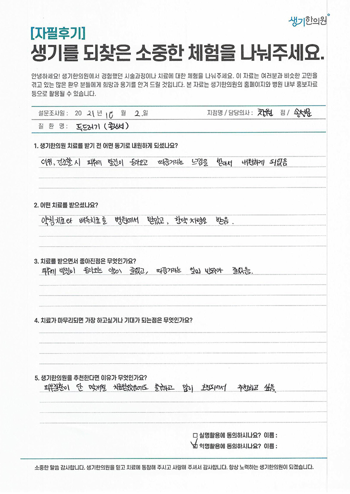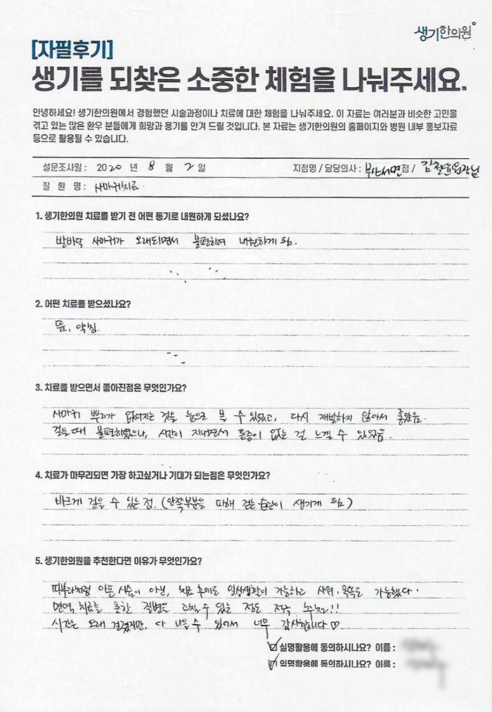생기한의원과 함께하신 생생한 자필 및 영상 후기를 소개합니다.