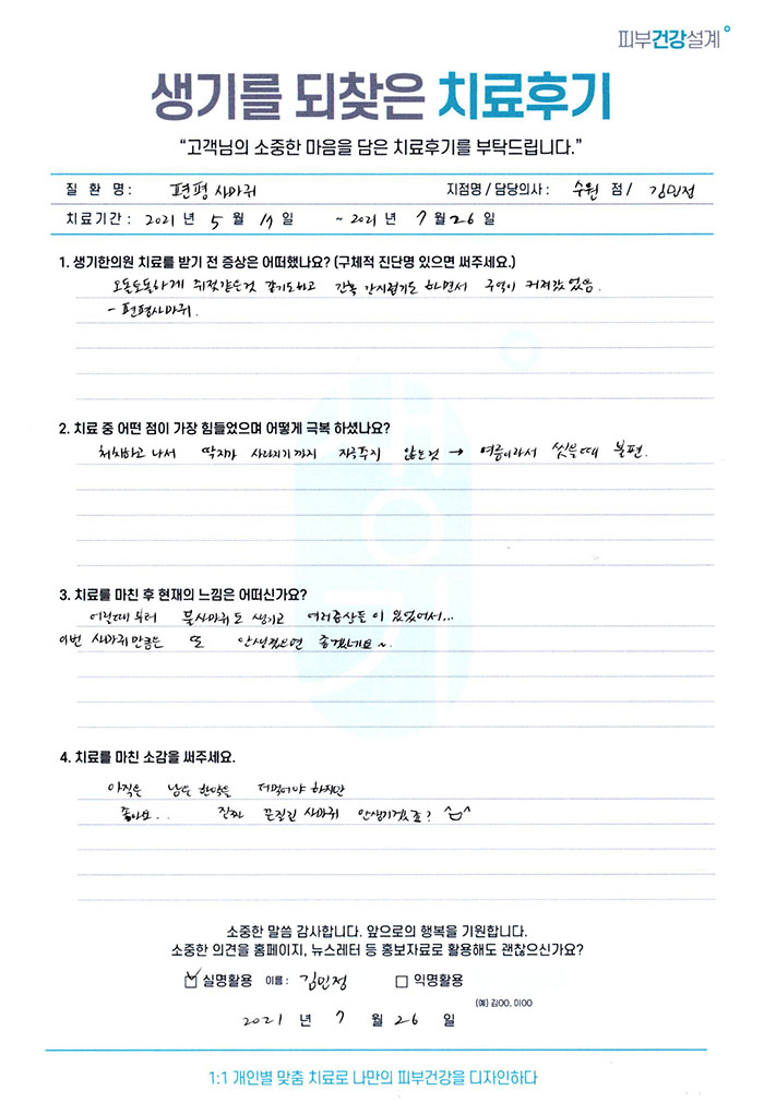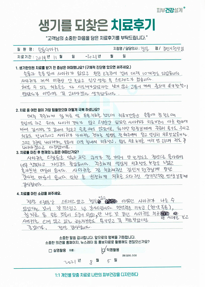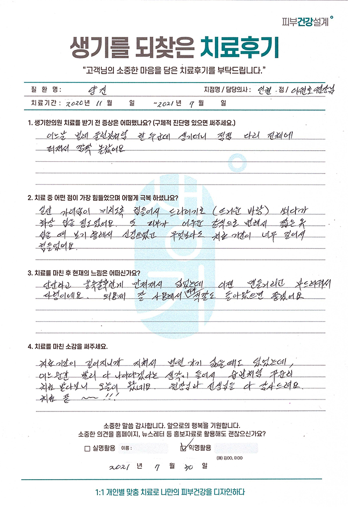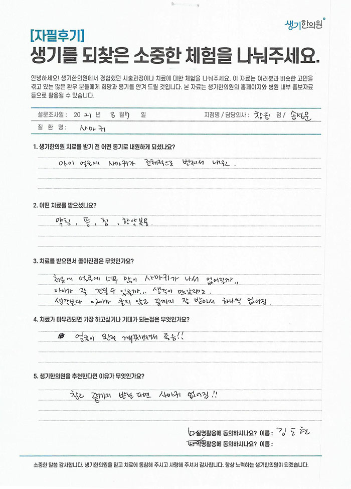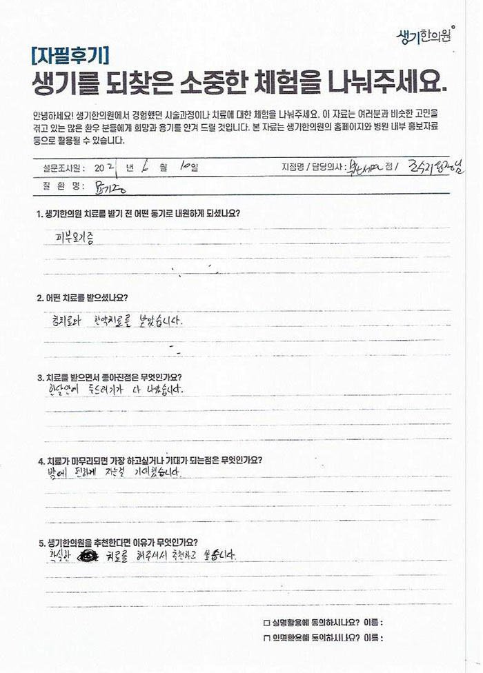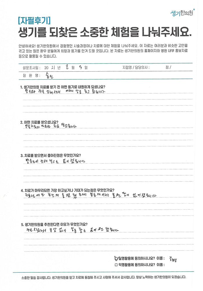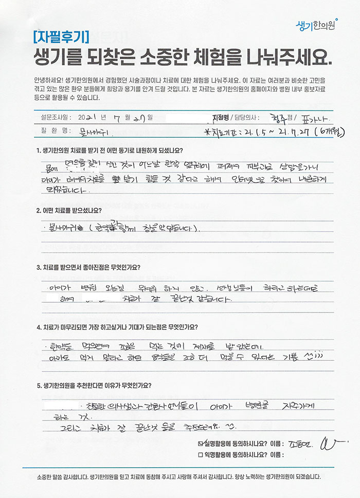 생기한의원과 함께하신 생생한 자필 및 영상 후기를 소개합니다.