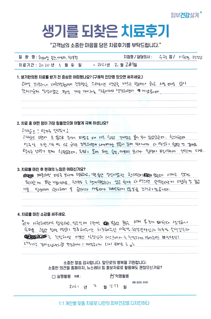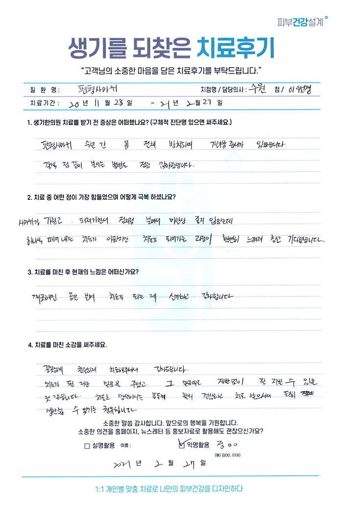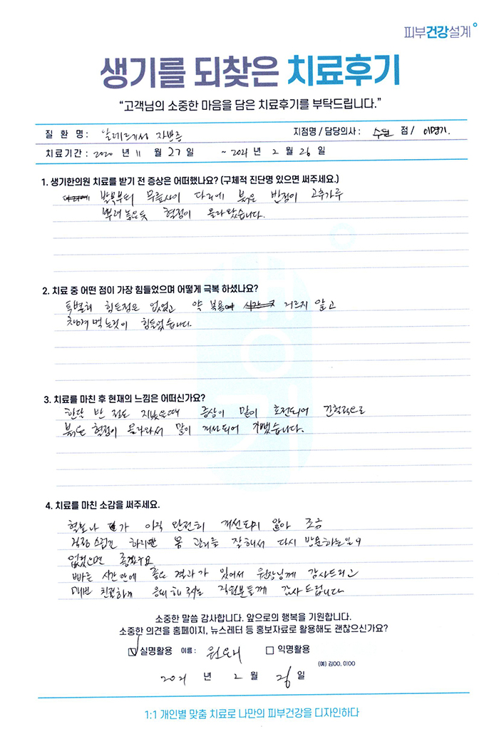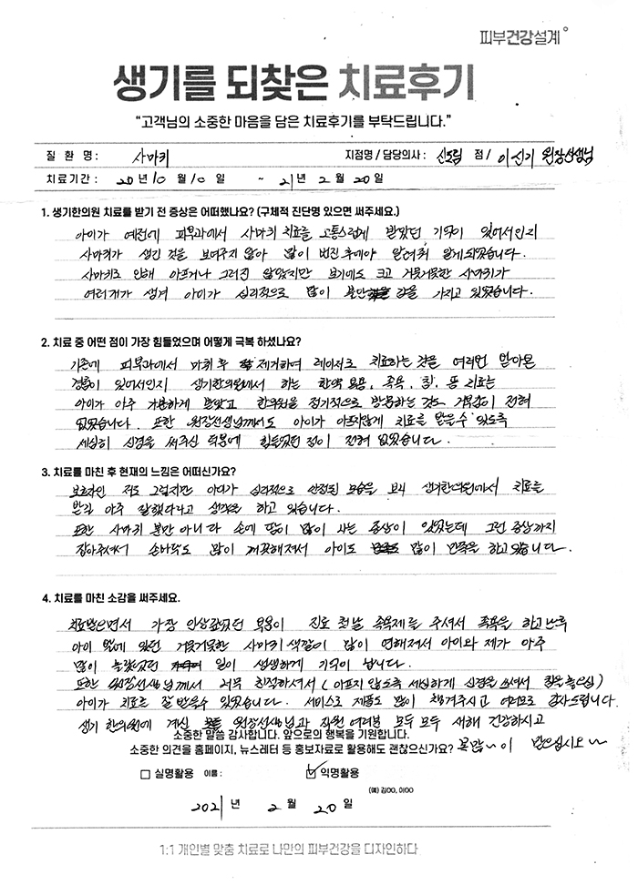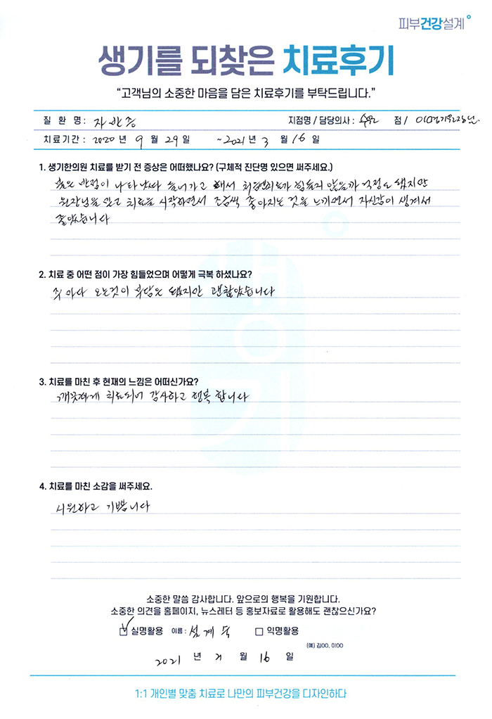 생기한의원과 함께하신 생생한 자필 및 영상 후기를 소개합니다.