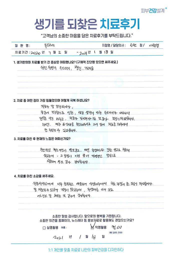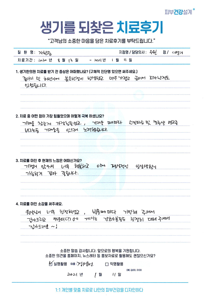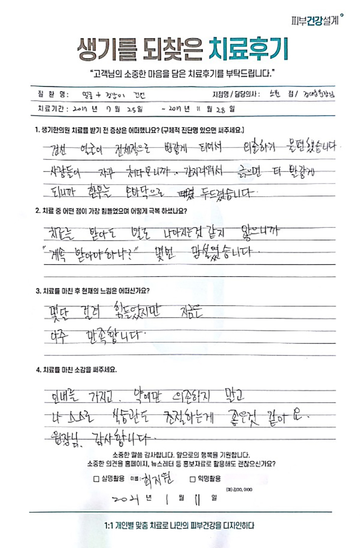 생기한의원과 함께하신 생생한 자필 및 영상 후기를 소개합니다.