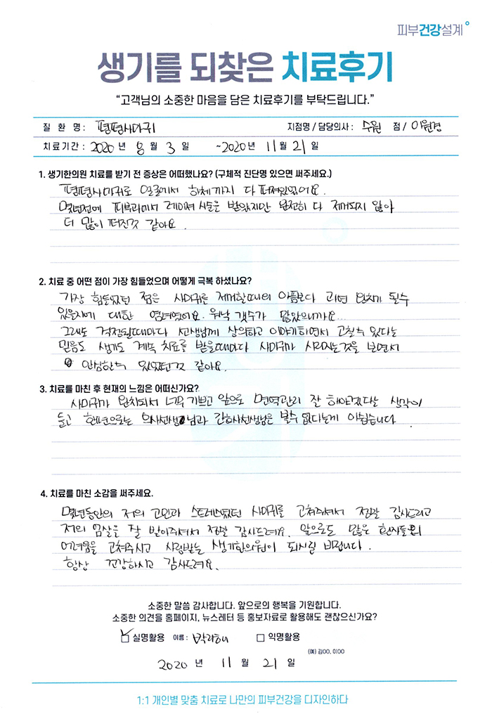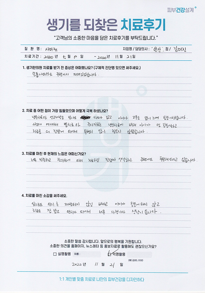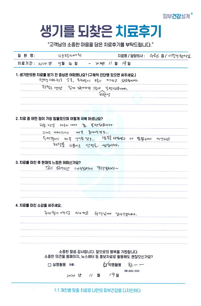 생기한의원과 함께하신 생생한 자필 및 영상 후기를 소개합니다.