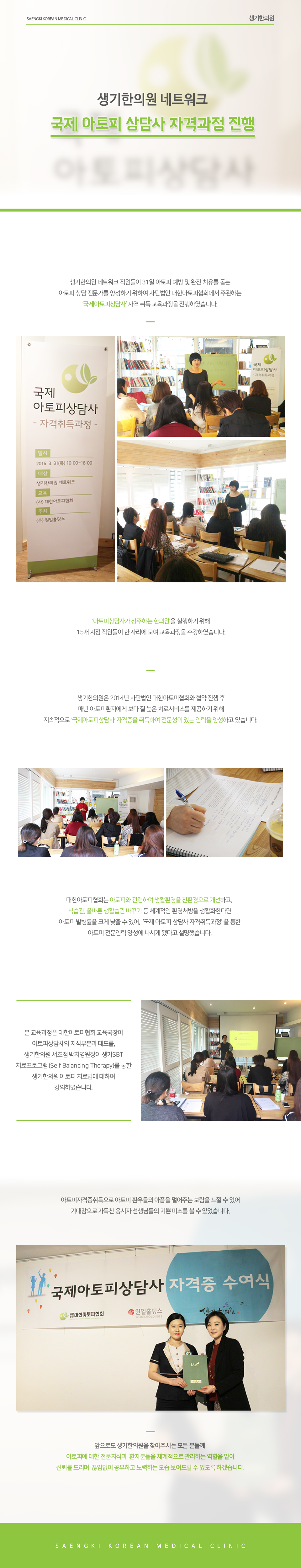 생기한의원 네트워크 국제 아토피 상담사 자격과..