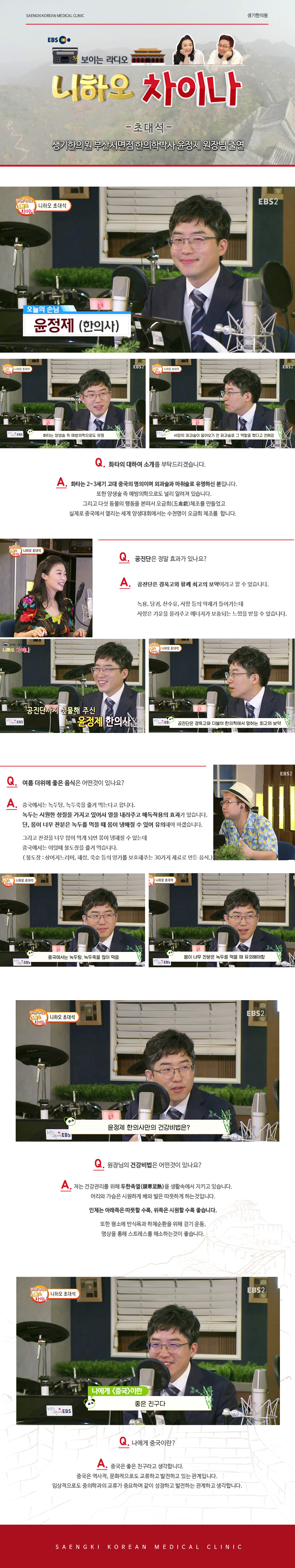생기한의원 부산서면점 윤정제 원장님 EBS Radio..