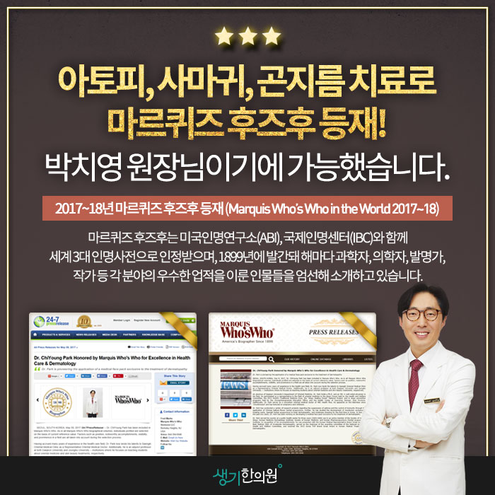 생기한의원 강남역점 박치영 원장님 세계3대 인명사전 마르퀴즈 후즈후 등재