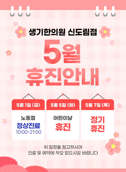 화, 금 야간진료 / 목요일 전체 휴진 / 점심시간 : 오후 1시부터 ~ 오후 2시 30분까지 (토요일 점심시간 없음)