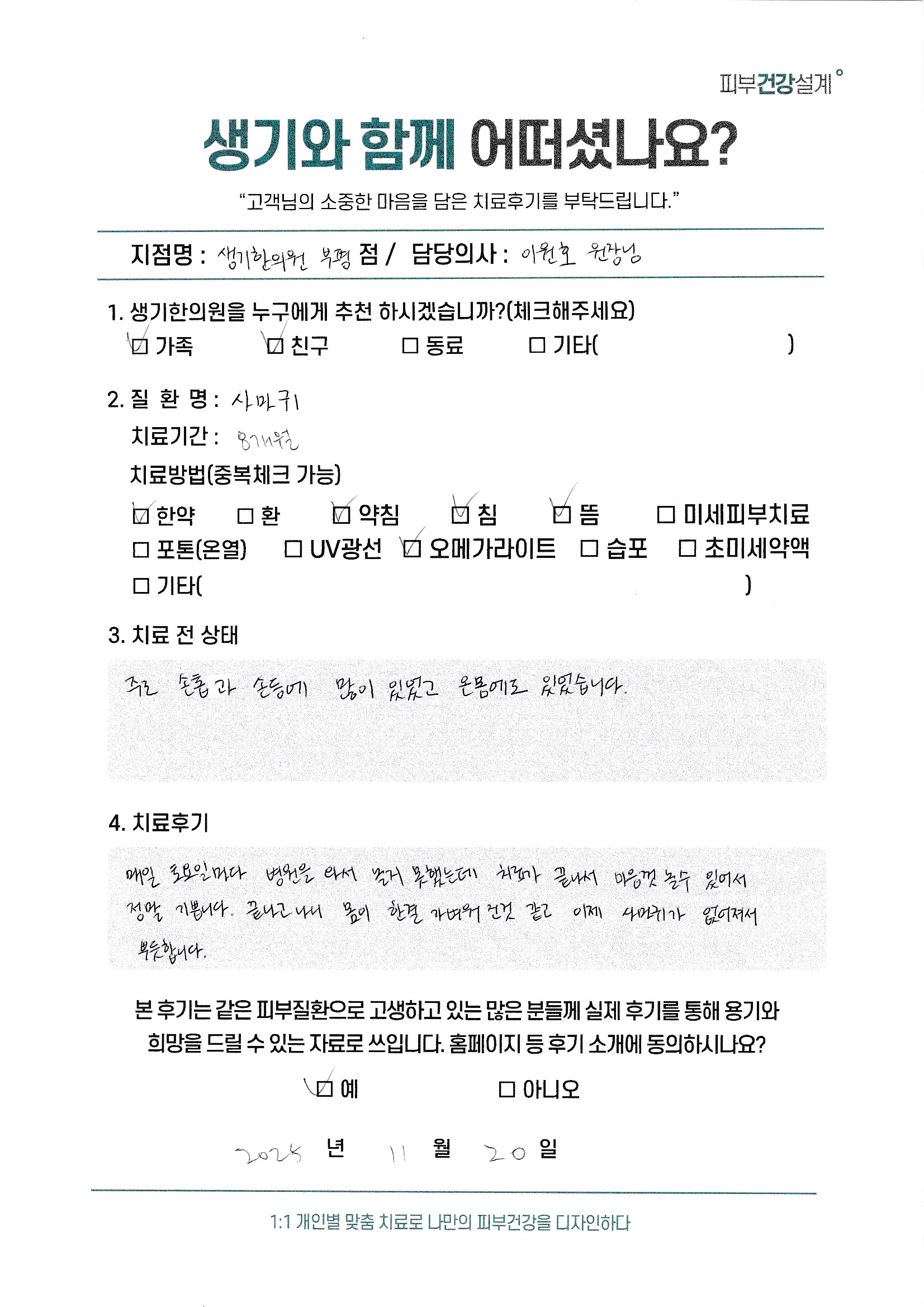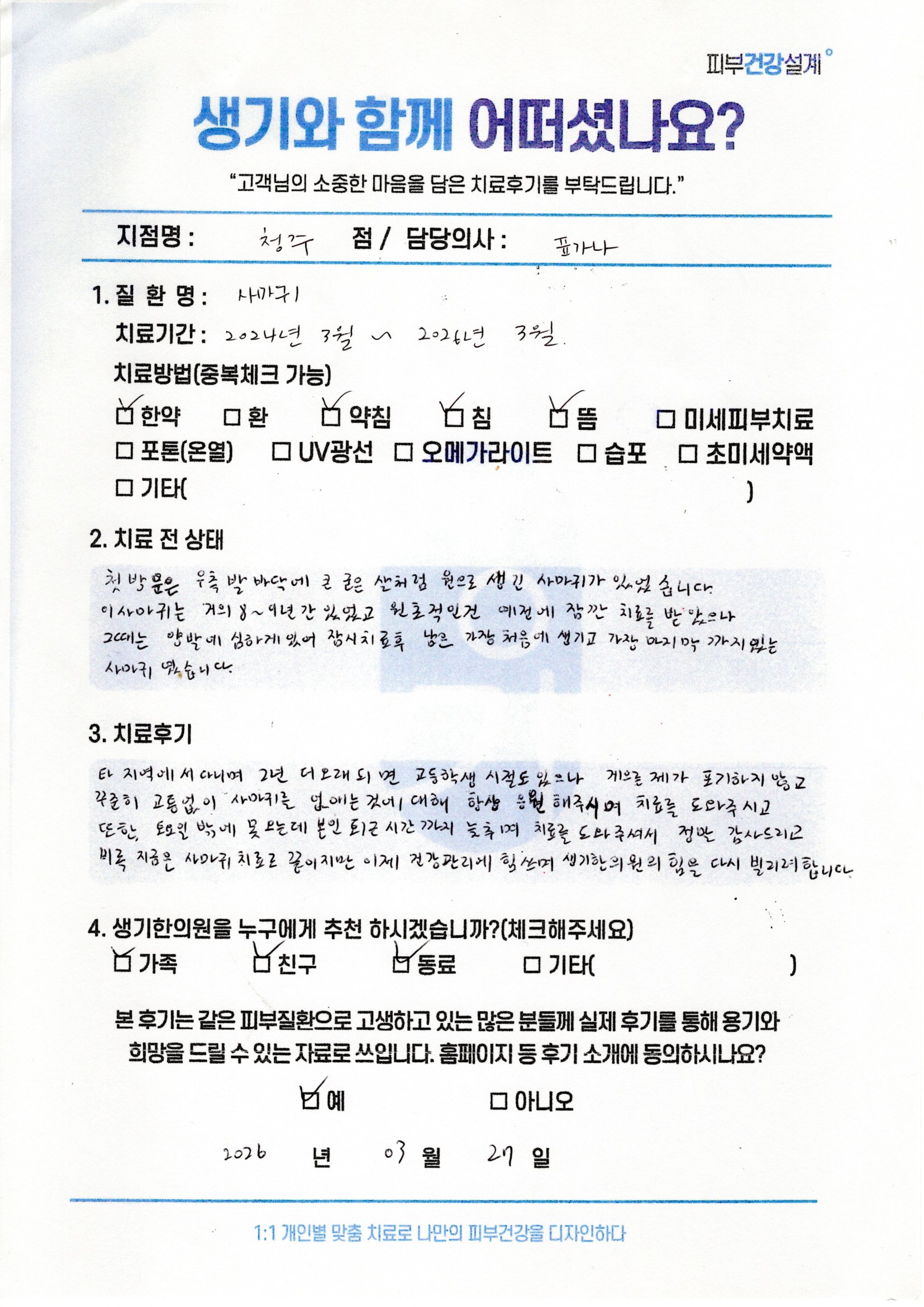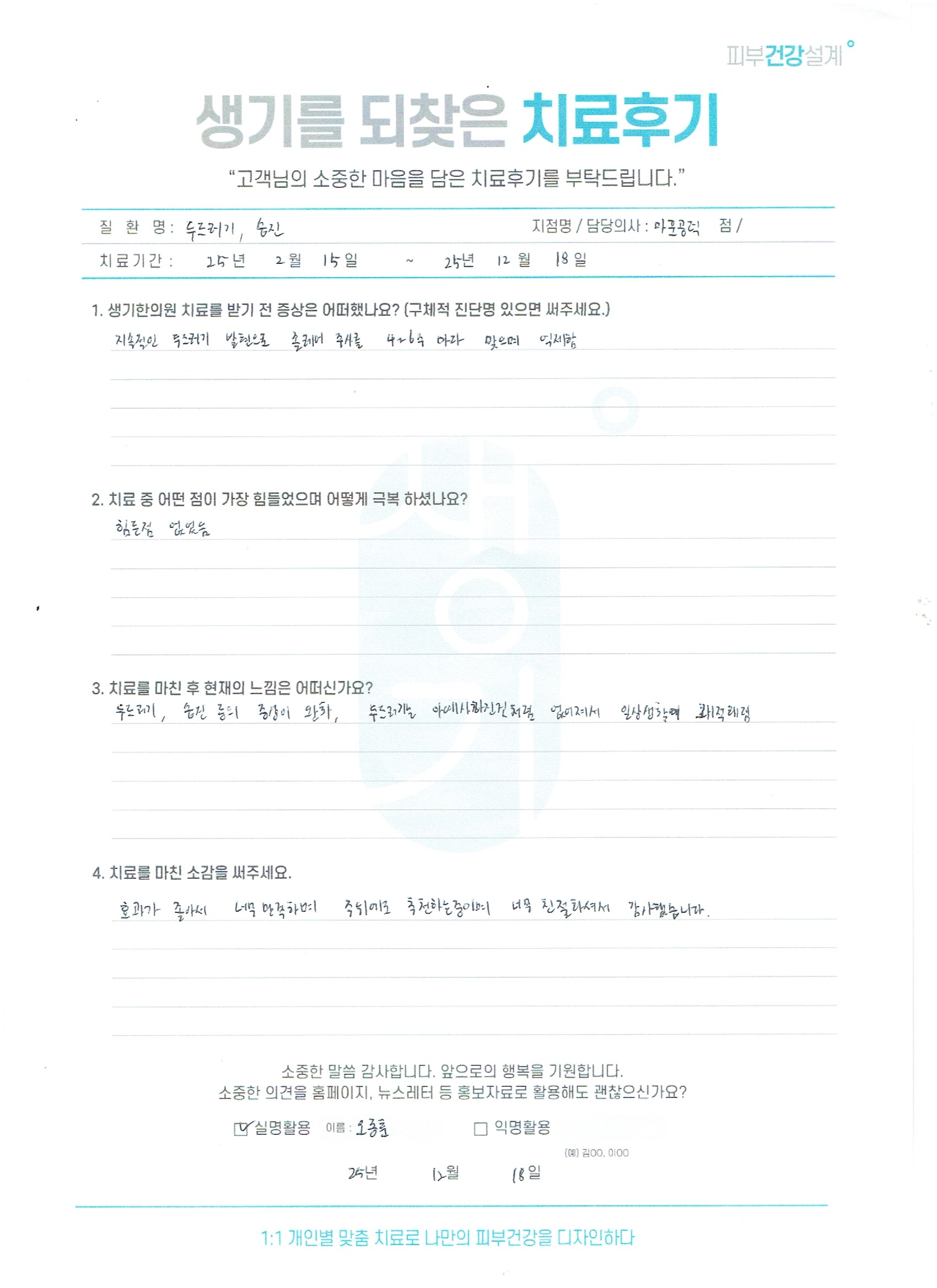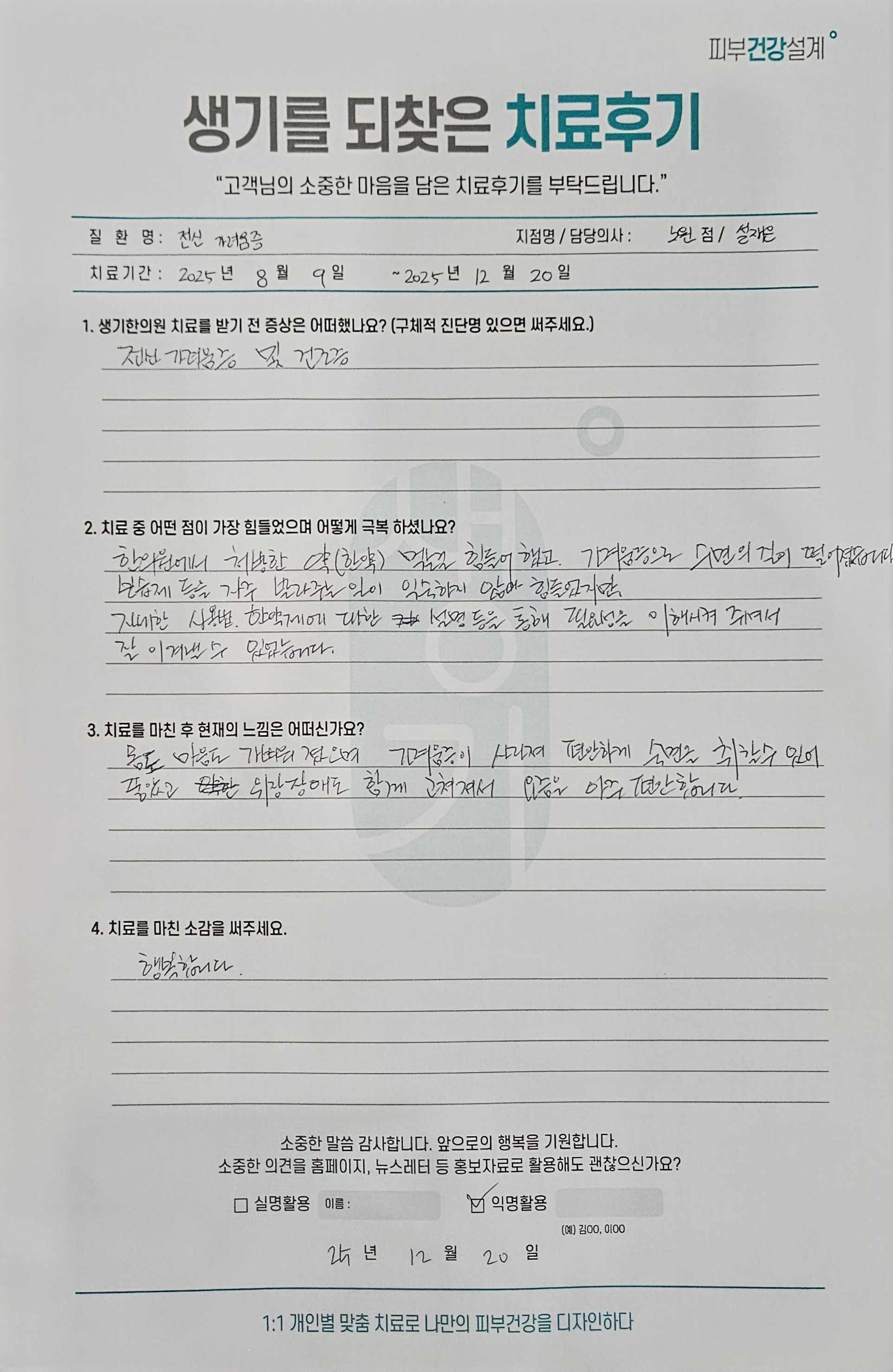 생기한의원과 함께하신 생생한 자필 및 영상 후기를 소개합니다.