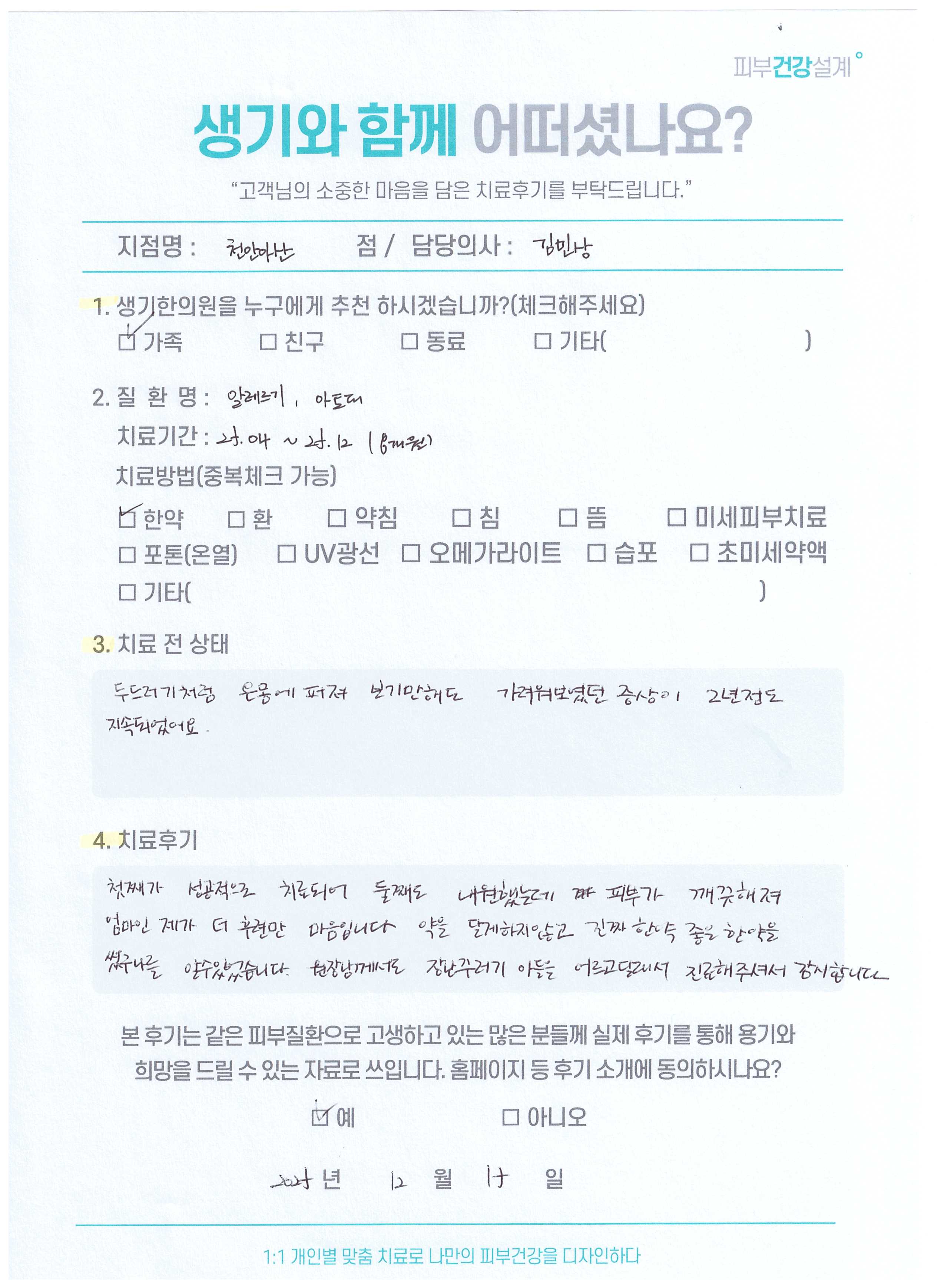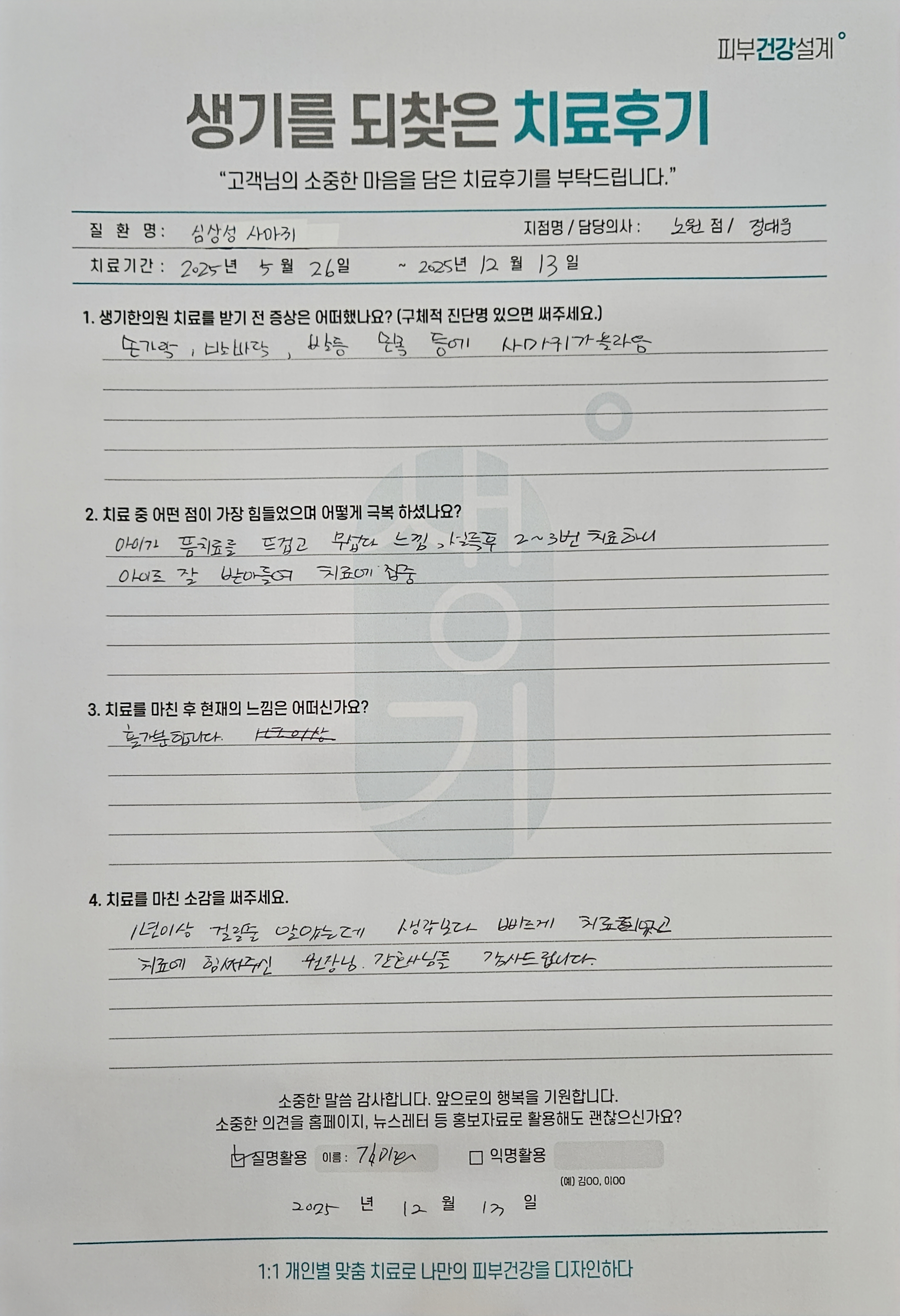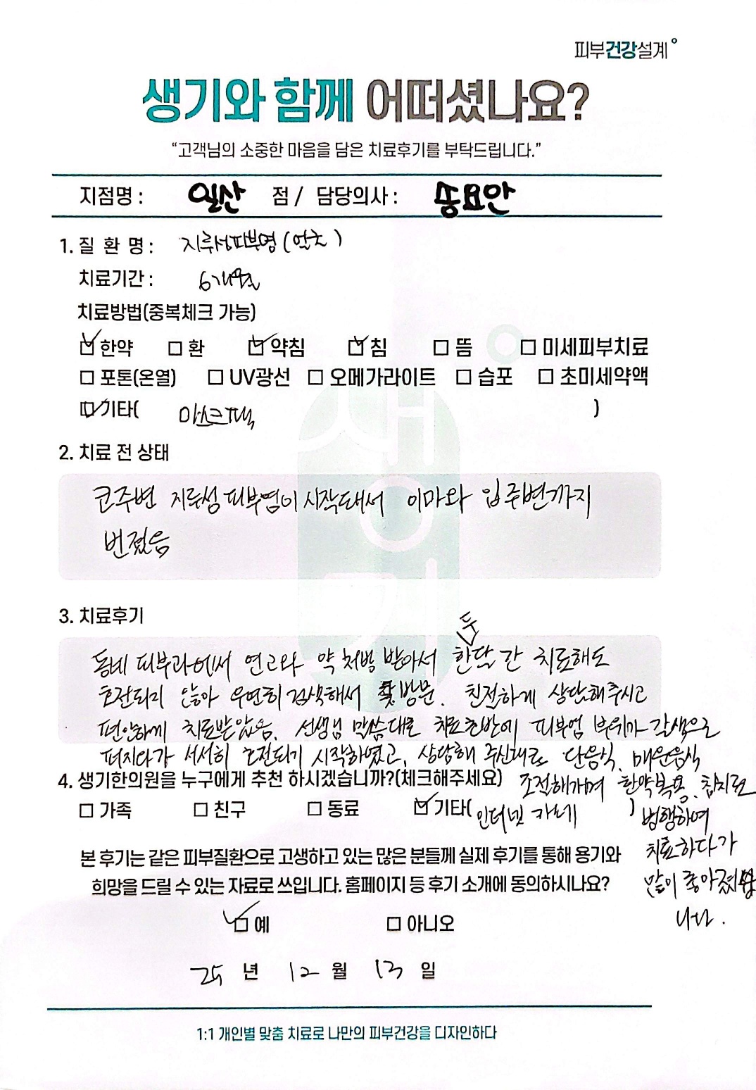 생기한의원과 함께하신 생생한 자필 및 영상 후기를 소개합니다.