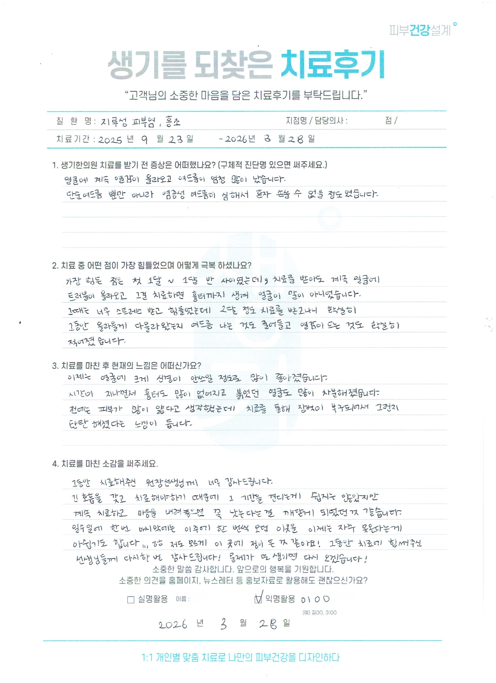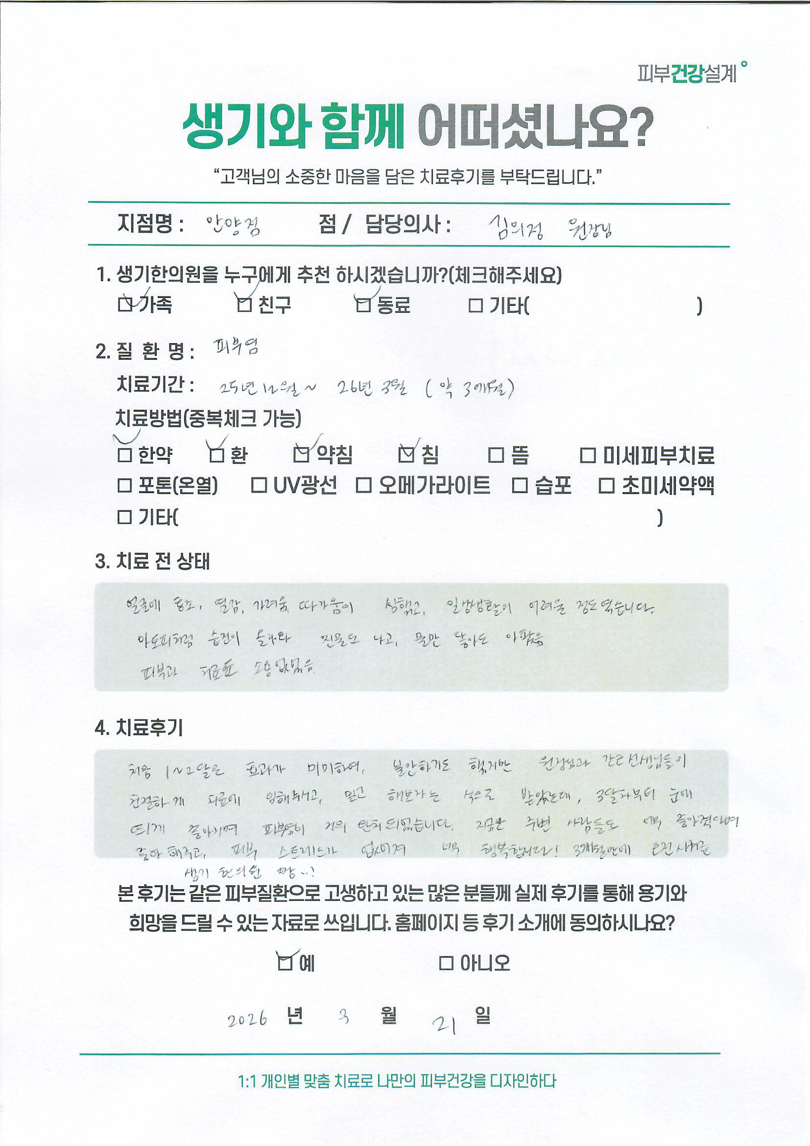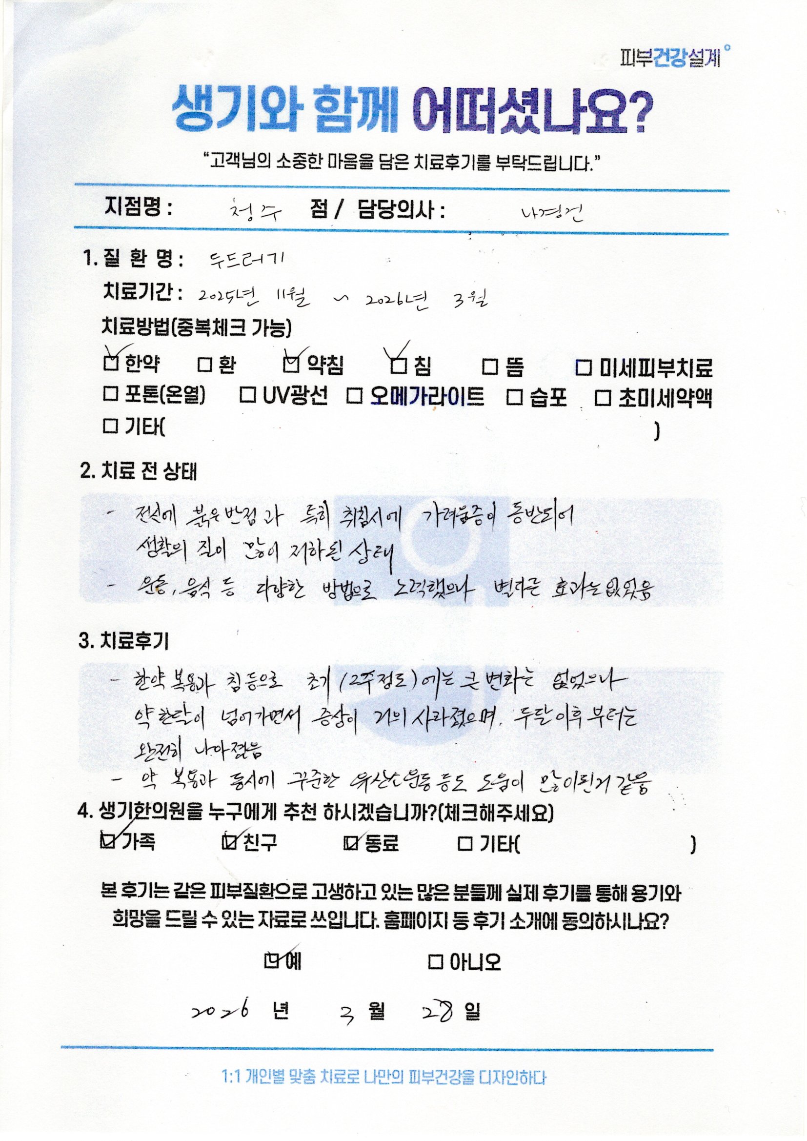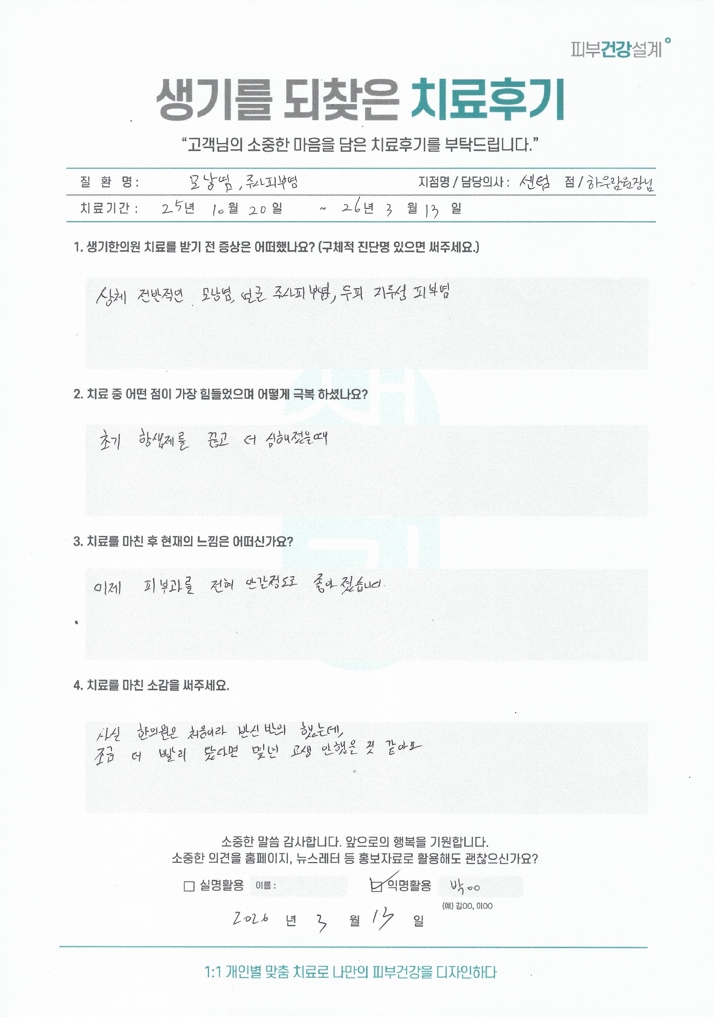 생기한의원과 함께하신 생생한 자필 및 영상 후기를 소개합니다.