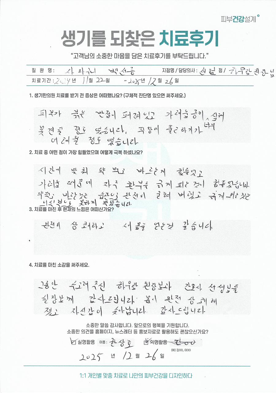 생기한의원과 함께하신 생생한 자필 및 영상 후기를 소개합니다.