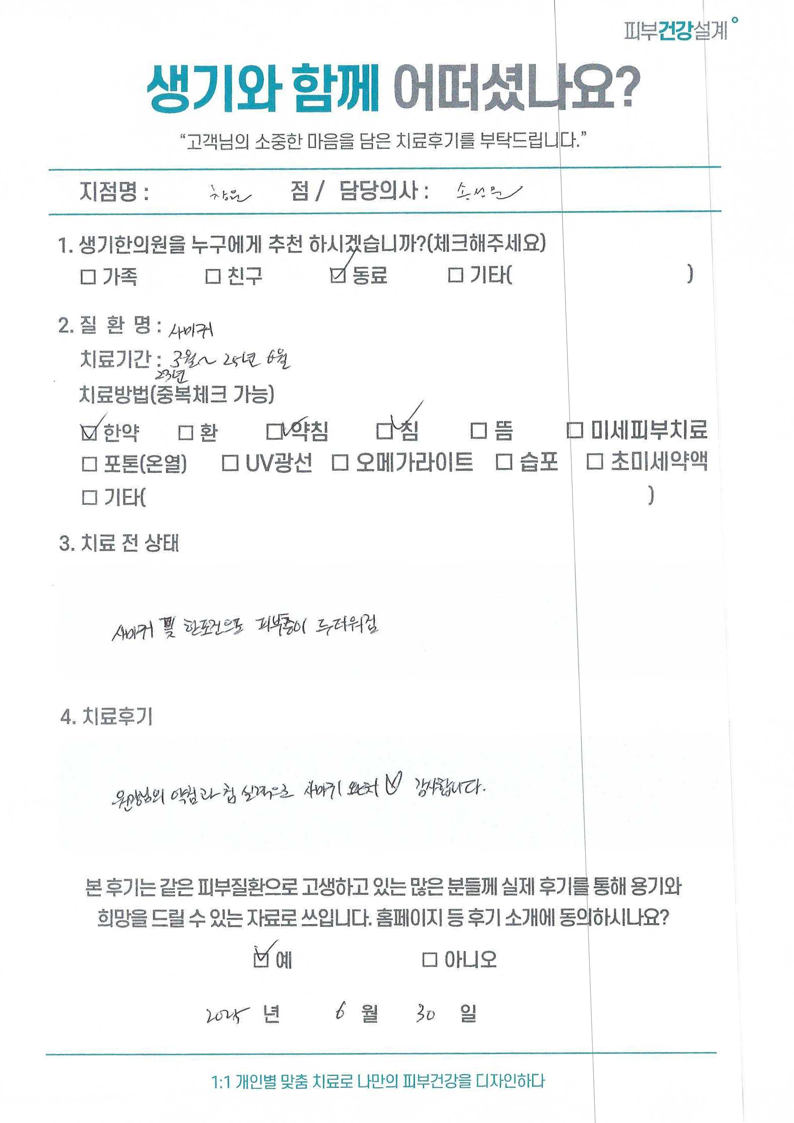 생기한의원과 함께하신 생생한 자필 및 영상 후기를 소개합니다.
