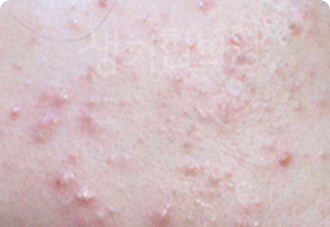 대표적인 증상은 면포(모낭 속에서 딱딱해진 피지)이며, 면포 주변으로 염증이 생기고